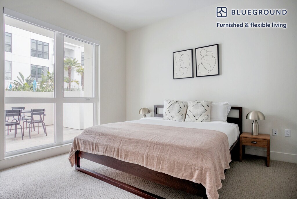 Feel at home wherever you choose to live with Blueground. You’ll love this lovely Morningside Park furnished one bedroom apartment with its modern decor, fully equipped kitchen, and exquisite living room. Ideally located, you’re close to all the best that Inglewood has to offer! (ID #LAX1160) The advertised rate of $3,610/month is the lowest available price, based on a 6 month(s) and 7 day(s) stay with a move-in date of January 13, 2026. If you’re looking for a 1-year stay, the rate is $3,840/month. Rates vary depending on the duration of stay, season, and other parameters. For exact pricing and additional pricing components, please visit our website and enter your desired move-in and move-out dates. The rate is applicable when billed upfront; it can be higher if billed in multiple payments. Brokers are welcome to reach out. Were you looking for an unfurnished lease? Try Blueground instead and upgrade from unfurnished to furnished living: - Furnished at rates comparable to unfurnished - No setup or furniture costs - save thousands - Move-in ready - save time, just bring your suitcase Designed with you in mind Gorgeous furniture, fully equipped kitchen, smart TV, and a premium wireless speaker are just a few of the amenities you’ll find inside this one bedroom apartment. Ideally located in Inglewood, you’ll find a lot to love outside as well. When you’re ready to relax, you’ll be happy to discover every Blueground bedroom comes with superior quality mattresses, luxury linens, and cozy towels. We handle everything so you can simply show up and start living. This apartment also offers in-apartment laundry. Sleeping arrangements King Bed, 70.8in/180cm Amenities Building amenities unique to this one bedroom apartment include an on-site: - Dryer - Elevator - Swimming pool - Washing machine - Lounge - Parking - Pets allowed Arrival and ongoing support The entire apartment is yours to enjoy! Throughout your stay, you’ll have access to our Client Experience team through the Blueground App. You can schedule additional cleanings, submit maintenance requests, and view our neighborhood recommendations with just a few taps. We’ll share all details upon confirmation of your stay. Other things to note Building amenities may have an extra cost. This Blueground apartment has flexible lease options, allowing you to book it for one month, a year, or more. Pets are welcome, though weight limits and breed restrictions apply and may incur fees. Parking is offered based on availability and is subject to a fee. We take great pride in ensuring every photo displayed is shot in our own units with our actual furnishings. That said, we regularly refresh our decor and furniture arrangement, which may differ from what’s pictured. [SI]