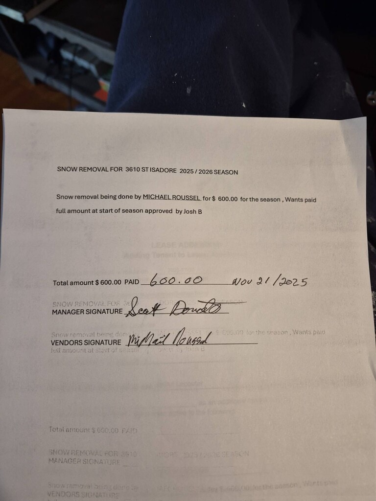Included Lawn care/Snow removal Water/Sewer Parking Garbage Collection Appliances Not Included Internet/TV Hydro/Heat Upper left Beautiful 4 unit property in St Isadore