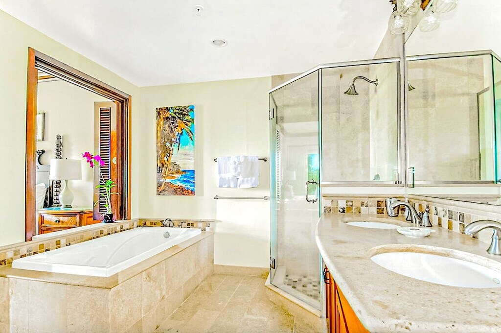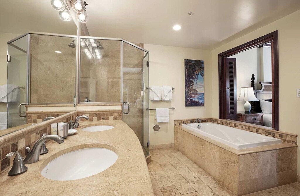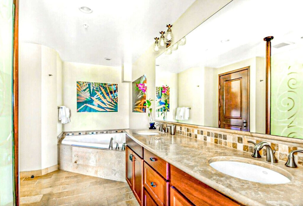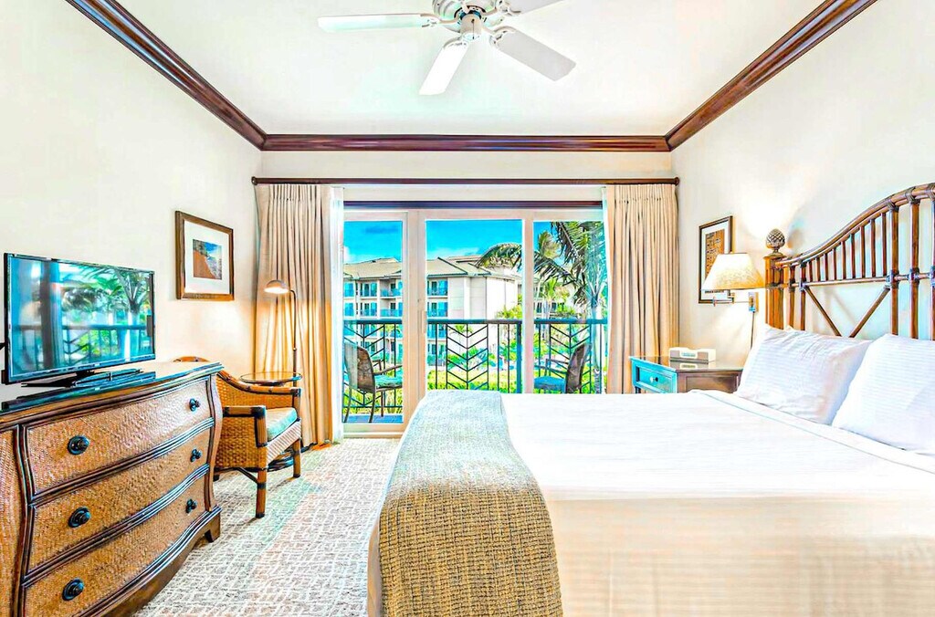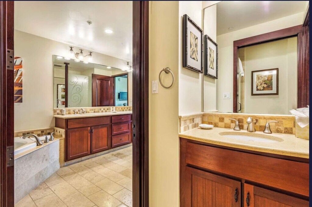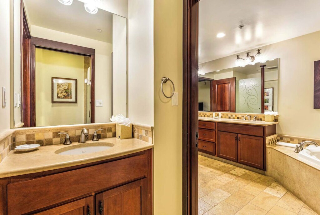 Feel at home in this stunning 2-bedroom, 3-bath luxury condo at Kauai’s Waipouli Beach Resort, located on the second floor. This exceptional retreat blends upscale comfort, designer finishes, and resort-style amenities, delivering an unforgettable island escape for families, couples, or friends traveling together. The resort has elevator access to all floors. Beautifully appointed, this residence showcases the highest-quality materials and elegant details throughout, including central air conditioning, a full-size washer and dryer, 100% natural stone Peruvian travertine floors, a Sub-Zero refrigerator and wine storage, Wolf gourmet appliances, African mahogany custom cabinetry, and plush designer furnishings and premium bedding. The spacious layout is perfect for up to 6 guests and includes three wall-mounted flat-screen TVs and high-speed Wi-Fi (250+ Mbps). There is a daily resort fee of $55 to use the amenities, collected upon check-in. Mid-stay cleans are available by request for an additional fee, and towels, linens, and a baby cot are available upon request, potentially for a fee. Waipouli Beach Resort is centrally located on Kauai’s Coconut Coast, giving guests effortless access to everything you need within minutes. You can walk to Safeway Grocery Store, Starbucks, ABC Store, Pono Market, Bull Shed Restaurant, spa services, and local boutiques. There is easy access to the Ke Ala Hele Makalae coastal path, perfect for sunrise walks, jogging, or bike riding along the ocean. A short drive away is Historic Kapa?a Town with shops, cafés, food trucks, and beaches, Lydgate Beach Park, Wailua Falls and ?Opaeka?a Falls, the Wailua River, Coconut Marketplace shopping center, and Sleeping Giant Trailhead. The condo is 15 minutes from the airport and conveniently located between the North Shore and South Shore. Check-in time is 4 pm and check-out is 11 am. The condo has central AC, but guests are asked to keep doors closed to maintain cooling and not adjust the a/c lower than 68 degrees. The beach in front of the resort is beautiful for walks and sunrise views, but ocean conditions vary, and swimming may not always be recommended. Pool towels are provided and should be returned before checkout. Please respect quiet hours to keep the resort peaceful for all guests. Kauai’s roosters are part of island life, and you may hear them in the morning. Includes a writing desk. [SI]