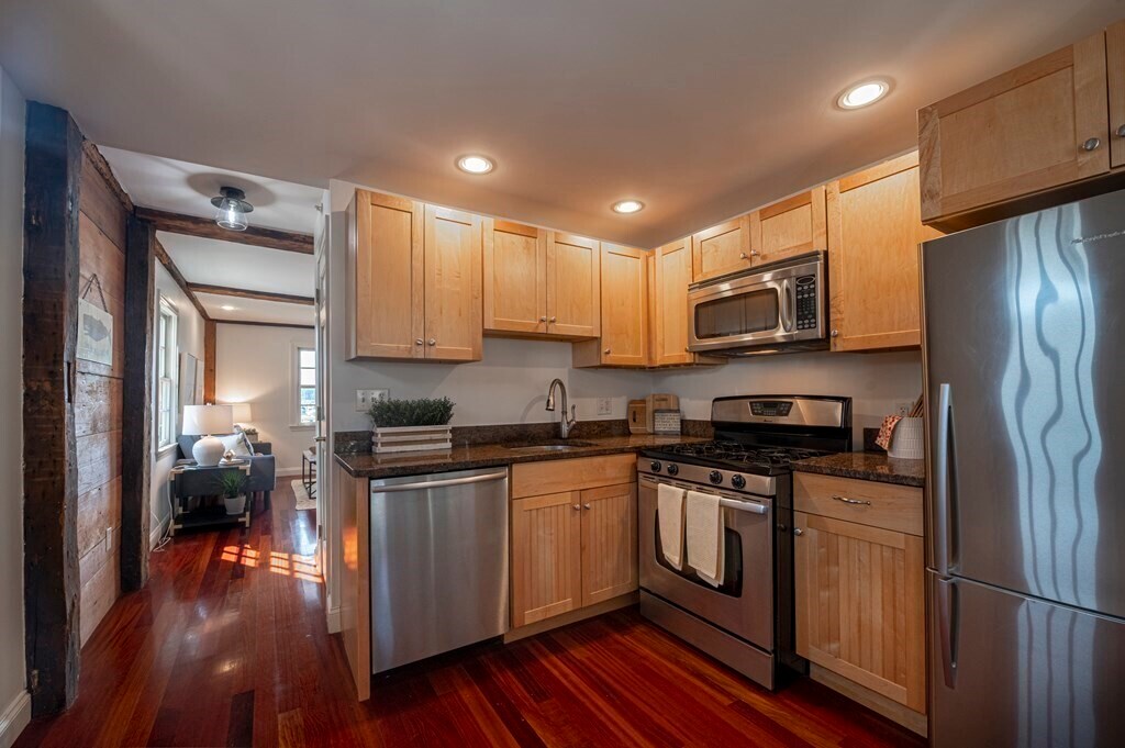Adorable harborside one-bedroom condo located on the first floor of a Georgian-style home dating to 1782, this property is ablend of historic charm and modern amenities. This condo features exposed beams, Brazilian cherry floors, two fireplaces, an updated kitchen with stainless steel appliances, central air conditioning, and in-unit laundry. Enjoy the seaside breezes on the front porch or private back deck. This unit is located on a side street mere moments from the Salem Ferry, in the heart of the vibrant Historic Derby Street Neighborhood with many restaurants and cultural sights at your doorstep.