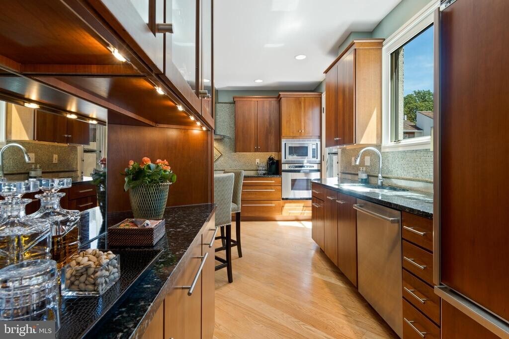 Welcome home to 4 Brettagne at Arbordeau in Devon. This stunning, creampuff 3 bedroom, 2.5 bath end-unit townhome is open, bright and exquisitely updated for just the style of living you've imagined. Sweeping yet private views on both upper floors bring the outside in with all new Pella windows and large sliding doors. Gorgeous patios and garden areas have been expanded for outdoor entertaining and gracious living. A welcoming foyer with 10-ft ceilings greets your guests upon entering. An open living area with gleaming hardwood floors, recessed lighting and multiple double glass sliding doors allow garden views and access throughout. The main living space opens to the dining area which has custom built-ins and additional access to the private patio. Perfect for entertaining! The gourmet kitchen is equipped with high-end appliances, subzero refrigerator, an abundance of wood cabinetry, granite counters, designer backsplash, a breakfast nook and access to an enclosed patio for convenient grilling. The second floor has a spectacular master suite with large bedroom and sitting area, built-in cabinetry, walk-in closet, sitting balcony, and a relaxing master bath with soaking tub, tiled shower, built-ins, and a large double sink vanity with granite counters. You'll be able to soak away your cares and rejuvenate daily in your spa-like bath. Two other bedrooms, one with balcony and a beautifully updated hall bath complete the second floor. The lower level offers many possibilities. It's your daily entrance from your two reserved parking spaces in the underground garage. You enter the home through a mudroom with custom built-in cubbies. The lower level also has two large rooms; perfect for use as a family room, exercise space, or home offices. The laundry is also on this level. The Arbordeau community offers a swimming pool, club house, rental guest rooms and a staffed, gated entrance. Are you ready for the Arbordeau lifestyle? 4 Brettagne is ready to tell it's next story. Will you be in it?