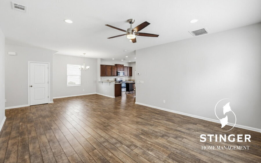 Welcome to your new home in the beautiful Seagrass Station community! Interior Features: - This spacious 4-bedroom, 3-bathroom home offers an open-concept layout with a large living area that flows seamlessly into the kitchen and dining space — perfect for both everyday living and entertaining. - The dining area is surrounded by windows, allowing for plenty of natural light and views of the backyard. - The kitchen comes fully equipped with standard appliances, a convenient island for additional prep space, and a pantry for extra storage. - Brand new carpet has been installed throughout the home, giving it a fresh, updated feel. - Upstairs, you’ll find a versatile loft area that makes an ideal flex space for a home office, playroom, or second living area. - The laundry room is conveniently located on the second floor and includes a washer and dryer. - The primary suite features a private ensuite bathroom and a spacious walk-in closet. Exterior Features: - Attached 2-car garage provides ample parking and storage. - Fully fenced backyard offers privacy and plenty of space to enjoy the outdoors. - Back patio is perfect for relaxing or entertaining guests. - Residents enjoy access to community amenities including a pool and playground. - Conveniently located near shopping, dining, and top-rated schools. Contact us today to schedule your tour of this beautiful and spacious home!Community Playground Luxury Vinyl Planking