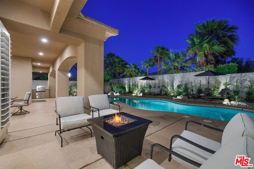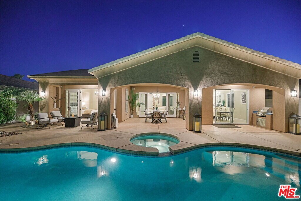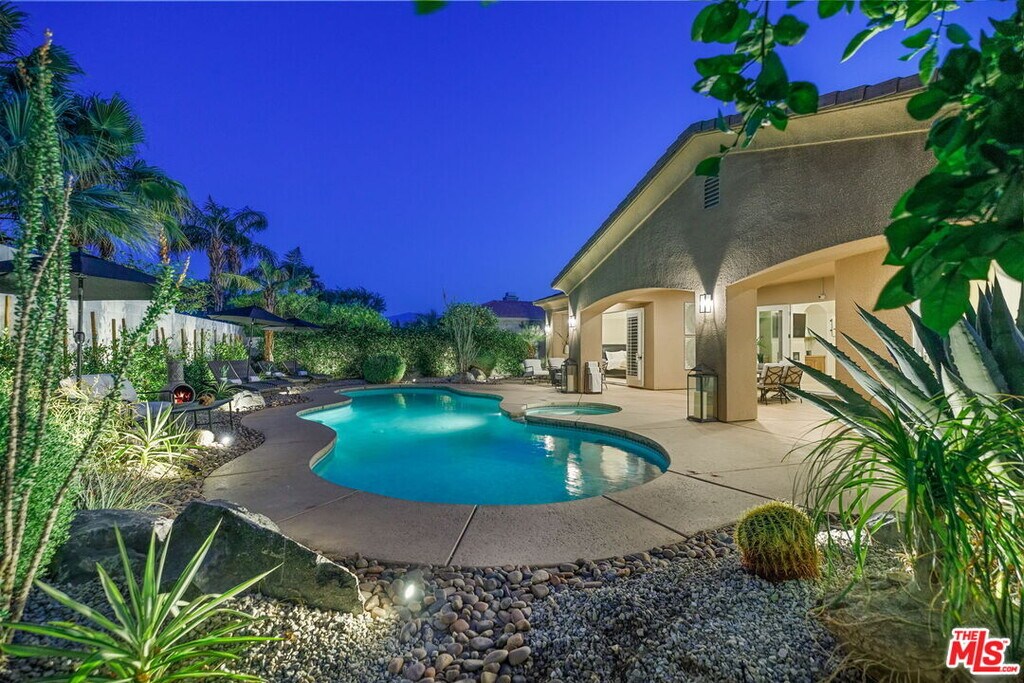 Minimum 12 month lease. Not available for seasonal rental! Photos show furnished, but house is unfurnished! Located in the prestigious gated community of Versailles in Rancho Mirage, California, this three bedroom and three bathroom house with high ceilings has a private heated pool and hot tub to make for a perfect, relaxing setting. A large, gated courtyard welcomes you into this freshly updated home through its grand double-door entrance. Highly-desired floor plan has the three bedrooms and three bathrooms separated for added privacy. Spacious master suite offers direct access to the backyard, along with a large walk-in closet with custom cabinetry, large master bath with separate shower, separate tub, and dual sink vanity. The beautiful, private, attached casita has its own entrance from the courtyard in addition to direct access to private outdoor space and to the pool. The third bedroom has a large closet and attached bathroom with shower. Stainless steel appliances in the kitchen with granite countertops and lots of cabinets for plenty of storage space. An outdoor BBQ station is conveniently located next to the kitchen. The massive heated pool and hot tub along with lush landscaping with tasteful landscape lighting makes for the perfect desert oasis. Large patio (with access from the living room, kitchen, and master bedroom) with multiple seating areas provides an exceptional space to entertain. Two car garage with plenty of cabinets for added storage. Washer and dryer located in the laundry room next to the garage. Enjoy the tennis courts of Versailles, a high-end, gated community in the heart of Rancho Mirage, the Playground of the Presidents. MLS# 26662945