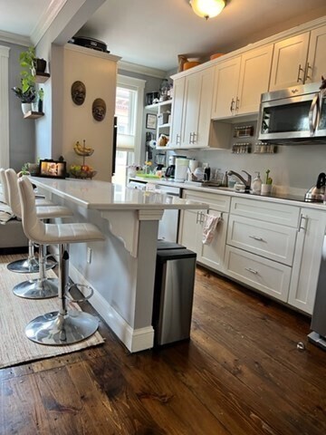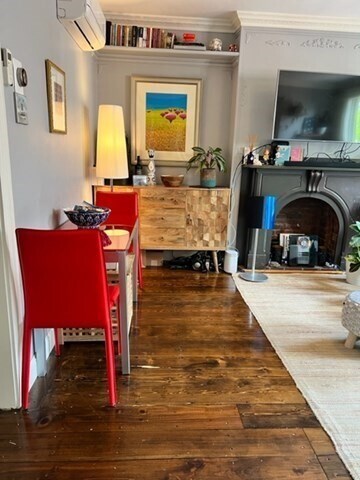 Renovated 1 Bed / 1 Bath in Fort Hill AVAILABLE MAY 1. This beautifully designed,single-owner condo is in a well-maintained four-unit building tucked away on a private dead-end street,with Roxbury Crossing station next door for easy commuting. This sun-filled home blends classic character with modern upgrades throughout. Features include original refinished wide-plank hardwood floors,white granite countertops,stainless steel appliances with built-in microwave and dishwasher,a filtered water refrigerator,and an in-unit washer/dryer combo (plus an additional full washer and dryer in the building). Enjoy a decorative fireplace with mantel,exposed brick accent wall in the oversized bedroom,full tub/shower bath,generous natural light with charming views,and abundant built-in storage. Central A/C and dual-zone NEST learning thermostats provide year-round comfort. MLS# 73484203