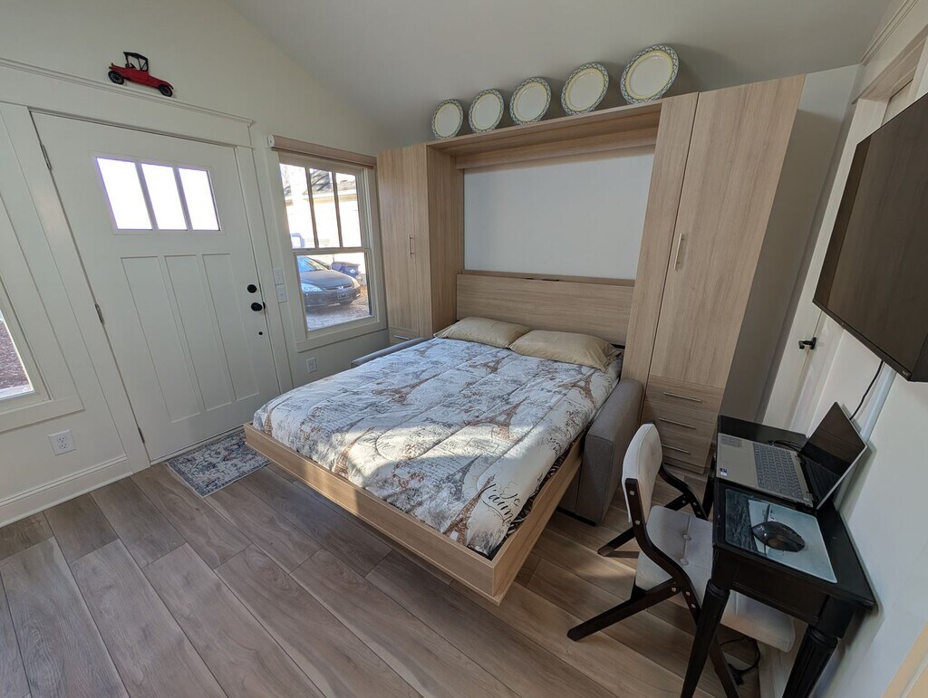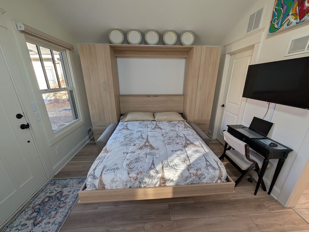 Detached ADU studio apartment located on Dixie Trl. at Hillsborough St. near NCSU. Private entrance to 1BR and 1BA recently renovated space. Washer and dryer in unit. Water and power utilities included!