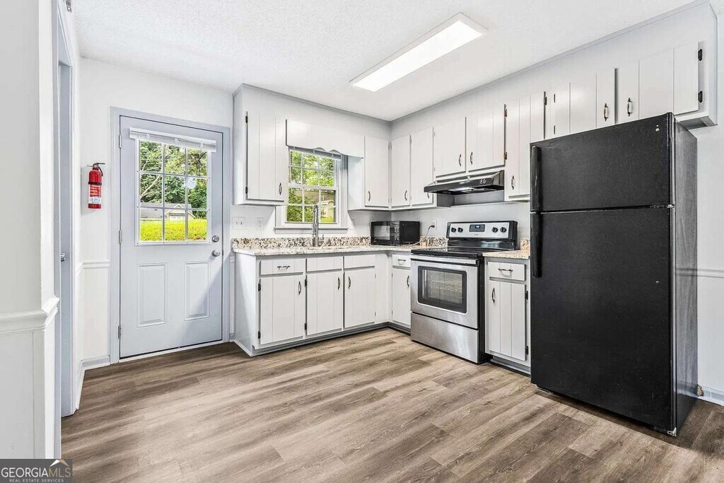 Welcome home! Beautiful duplex unit with open floor plan and over 900 sqft of living space with backyard, front porch, and storage shed! Brand new paint, new flooring, and new granite countertops! Stainless steel stove, microwave, dishwasher, and refrigerator provided! The furnace is gas. Walking distance to parks & easy access to highways! Lawn service is included with rent.