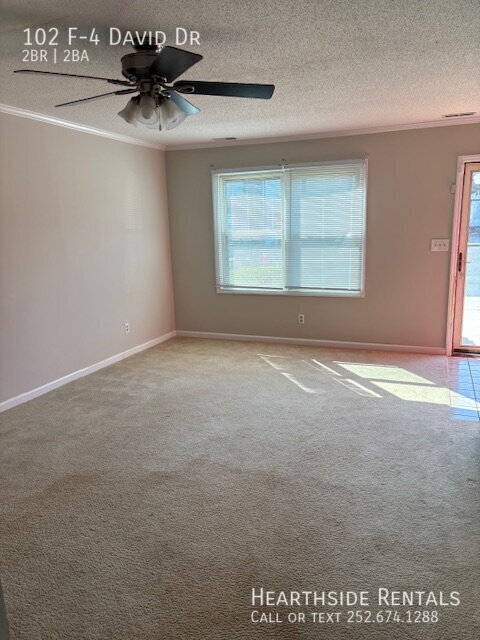 Cherish the opportunity to call this charming townhouse at 102 F-4 David Dr, Greenville, NC, your new home. Nestled in a serene neighborhood, this delightful residence offers a perfect blend of comfort and convenience. Boasting two spacious bedrooms, the home provides ample room for relaxation and personalization. The thoughtfully designed interior includes a full bathroom and a half bath, ensuring practicality for everyday living. With a generous 1,056 square feet of space, the layout is both functional and inviting, making it ideal for hosting gatherings or enjoying quiet evenings at home. Natural light dances through the windows, creating a warm and welcoming atmosphere throughout. The property's location offers easy access to local amenities, shopping, and dining, enhancing your lifestyle with endless possibilities. Imagine sipping your morning coffee on the private patio, surrounded by lush greenery and tranquil surroundings. Experience the best of Greenville living in this well-appointed townhouse that promises to be more than just a place to live—it's a place to cherish. Don't miss the chance to make this lovely residence your own sanctuary.