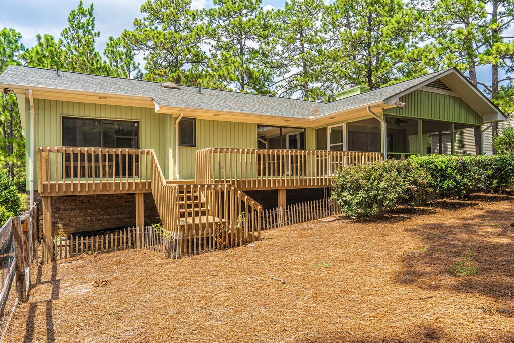 This fantastic Pinehurst home offers 3 bedrooms, 2.5 bathrooms, an updated kitchen and a vaulted living room all on a single story living space! Upon entry, the living room is cozy and bright offering a wood burning fireplace, a stone hearth and vaulted ceiling. The eat in kitchen is beautifully updated with contemporary colors and materials, down to the cabinet pulls. The extended deck and screened in porch will be your favorite places to live and play! Set up a bug free outdoor living room and enjoy the deck overlooking the fenced backyard. The main bedroom suite has deck access, a walk in closet, double vanity and a stand up shower. Don't miss out on the opportunity to rent this charming home!