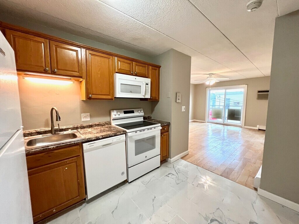 Comfort,style & convenient! Enjoy walks along the beach which is less than a mile away! Welcome to this beautifully updated apartment,walking distance to Wonderland T station,Revere Beach,restaurants,shops,pharmacies,etc.. HEAT AND HOT WATER INCLUDED IN MONTHLY RENT. Enter the unit and enjoy large combo dining/living room w/hardwood floors. Sliding door extends enjoyment to private balcony. Remodeled kitchen,new cabinetry and countertops is perfect for mail prep. Two large bedrooms w/hardwood floors and ample closet space. Renovated full bath. Wall AC. Freshly painted. One parking space. Surveillance cameras on property. Secured entrance. Trash removal twice a week. W/D common in building. Professionally managed property. MLS# 73506074