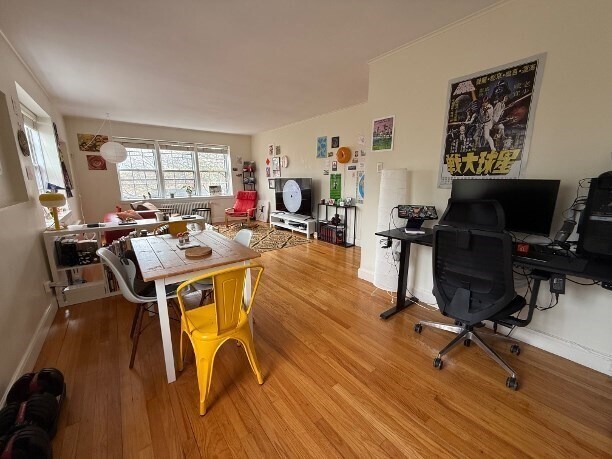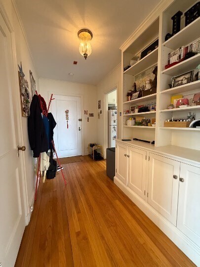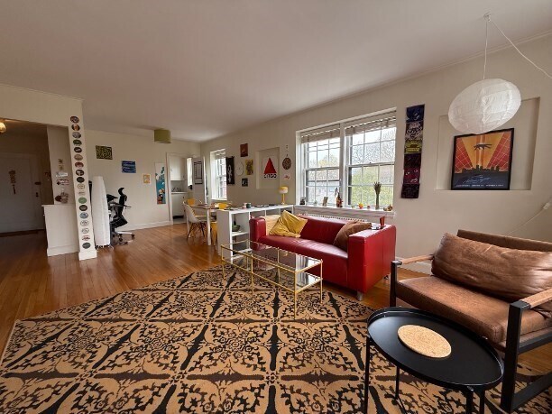 This top-floor corner unit in an elevator building offers excellent natural light throughout and is conveniently located on the Brighton/Brookline line. The apartment features an entry foyer with a built-in floor-to-ceiling bookcase,leading into a spacious living and dining area. The bedroom is generously sized and can comfortably fit a queen or king bed with additional furniture. Hardwood floors and high ceilings run throughout the unit. The kitchen is functional and efficient,with plenty cabinet space. Multiple closets provide strong storage options,and the assigned parking space is conveniently located just outside the entrance. This is a pet-friendly,professionally managed building with easy access to three Green Line T stops,restaurants,shops,and neighborhood amenities. Rent includes heat,hot water,trash removal,snow removal,landscaping. MLS ID 73507686
