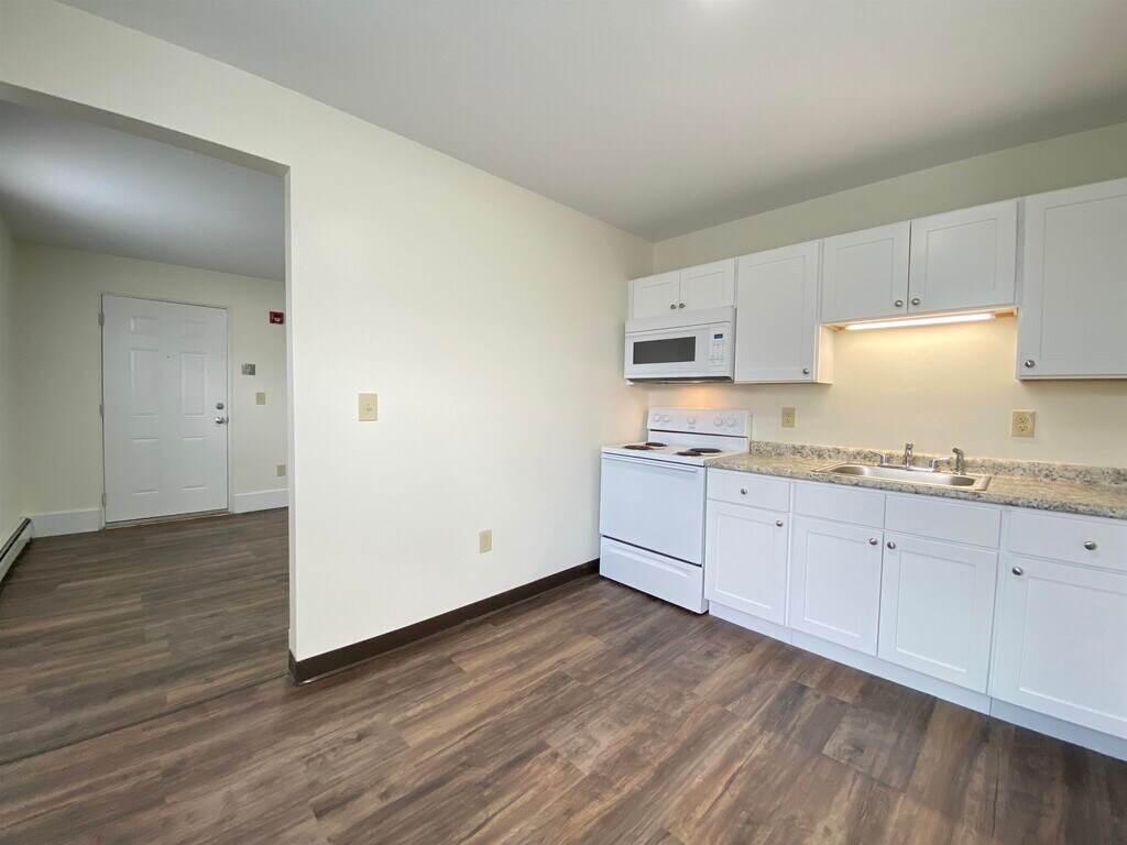 Landmark Apartments 4 Martin Street Derry, NH Live in the heart of beautiful Derry, NH. Moments to Route 93 Two room studio for rent Heat and Hot Water are Included in your rent Features: Quiet 1st floor studio apt 2 room layout Free Heat and Hot Water All Newly renovated New kitchen cabinets New Appliances including fridge, electric range, hood and Microwave New Bathroom Vanity New wood style flooring On-site Laundry Off Street Parking Walk to restaurants and shops. Steps to the Derry Bike Trail No Security Deposit Required Broker/Owner. MLS# 5073062