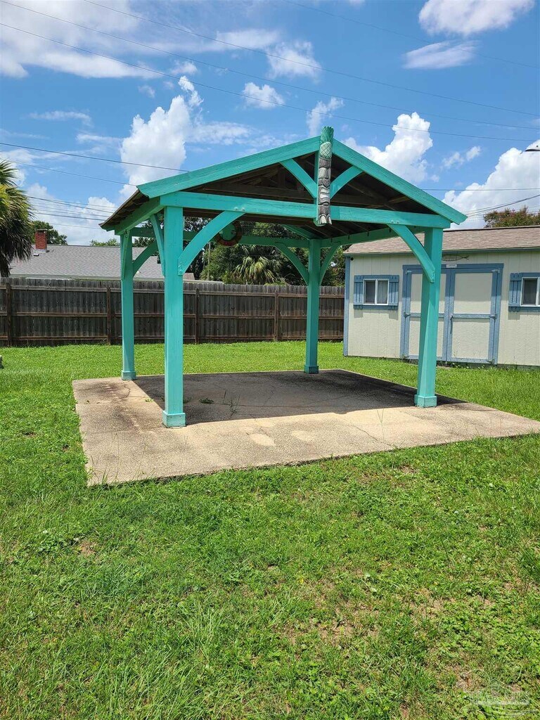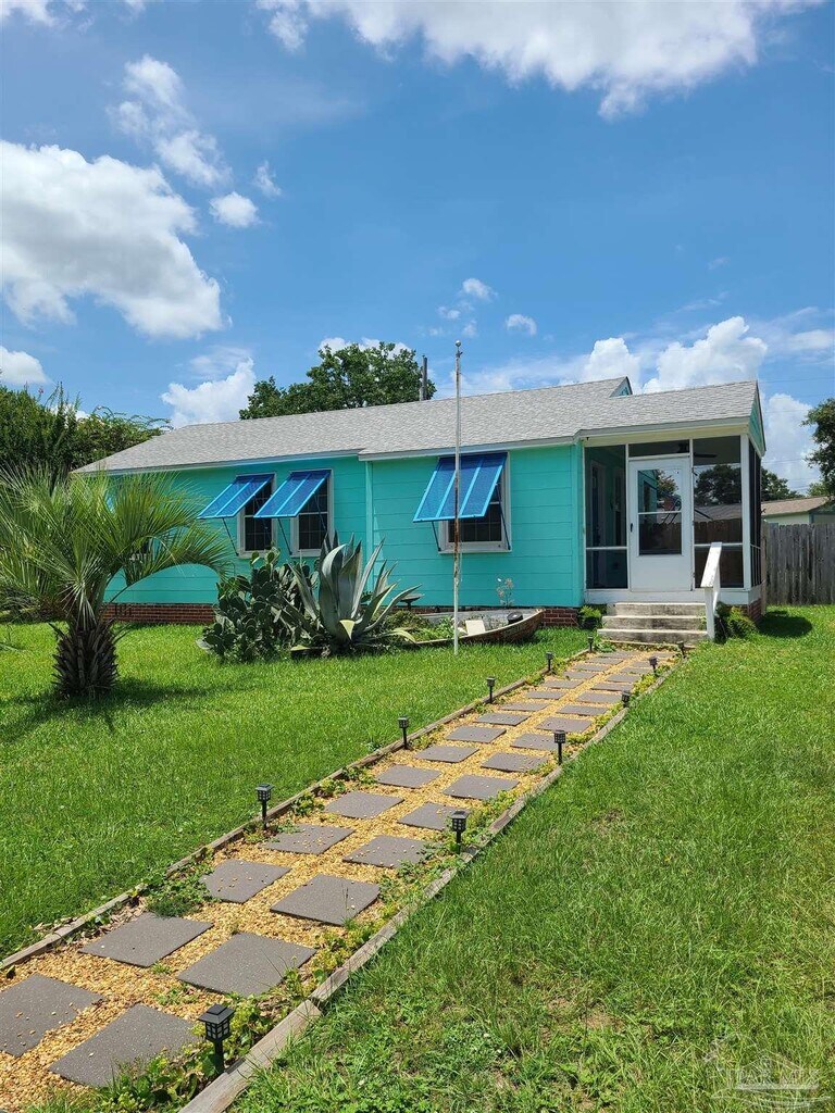 Very cute island style cottage. Kitchen and bath renovated,with original wood flooring. Bahamian shutters,large privacy fenced yard,with covered patio for entertaining. Separate work shop shed,with power. Nice neighborhood close to Pensacola NAS,downtown,and minutes to Perdido Key.