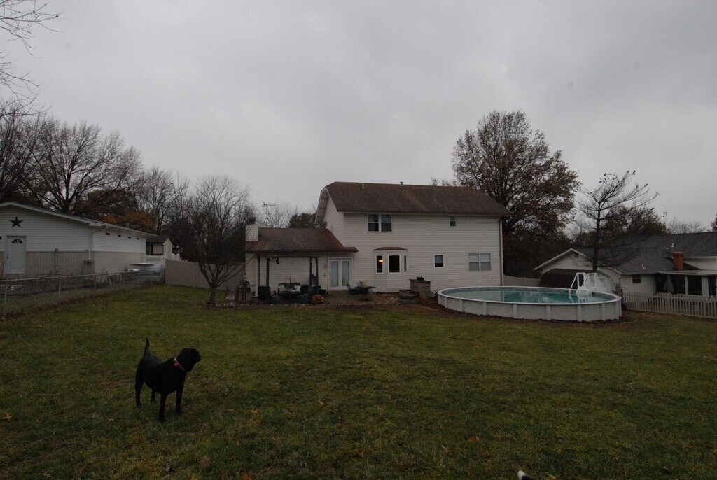 ***Occupied and shown by appointment only, please do not disturb current occupants*** 4 Oak Park Drive, St Peters 63376. Call for more details at . Located in Parkwood Estates on a quiet street. This is a lovely 4 Bedroom 2 full and 2 half baths plus finished basement, 2 story house with 2192 Square feet of living space on the two top floors. Large kitchen with custom cabinets including crown molding, pantry, spacious island/breakfast bar, planning desk, bay window, dining room and family room. The den off of the foyer has an architectural window and is perfect as a study. Upstairs are 3 good size bedrooms, 2 hall linen closets and a master suite (17 x 12) with a walk-in closet and bath with a jetted corner tub, separate shower and custom linen cabinet. The Lower level will provide space for all you do including a rec room with pool table, office space, 2 other open areas, a 1/2 bath and cedar closet. Some other nice features include a wood burning fireplace, fire pit, brand new above ground pool, fenced in very large yard, rear patio with trellis and outdoor furniture, deluxe gas grill, barbecue pit, covered front porch. The 2 car garage helps with your storage needs. All appliances shown in pictures stay with home including washer and dryer (on main floor) and extra fridge and freezer in garage. House comes with an updated and newer $10,000 high efficiency Trane air/furnace. Available for occupancy mid April to early May. $2400 first month rent and $2400 security deposit, both due upon acceptance. One year lease minimum. All utilities are at tenant expense including water and trash but not sewer. Pets are allowed with no pet deposit. This home is strictly for rent and is not available for lease purchase or option to buy. Francis Howell Central High, Saeger Middle and Fairmount Elementary schools. Directions; St. Peters/Howell Road to Parkwood Drive, left on Snowhill, left on Parkview Drive, right on Oak Park.