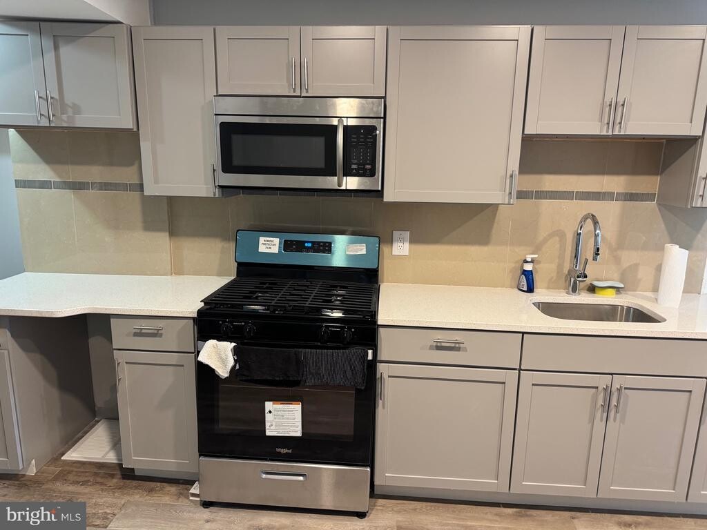 For rent this beautiful 3 BR and two full bathrooms apartment on 2Nd floor in the popular Barrington section of Upper Darby and just one block away from 69th Street train station and shopping area. Recently renovated. new waterproof luxury vinyl flooring , ceramic tiles in both bathrooms.The new kitchen was elegantly and professionally put together with a beautiful new modern cabinets, and quartz countertops with new backsplash. Two master bedrooms with a full modern bathroom.The long driveway for 4-5 car parking. Walk to the trolley, 69th Street train stations, and bus lines. Get into the City fast, or take the trolley to Media.