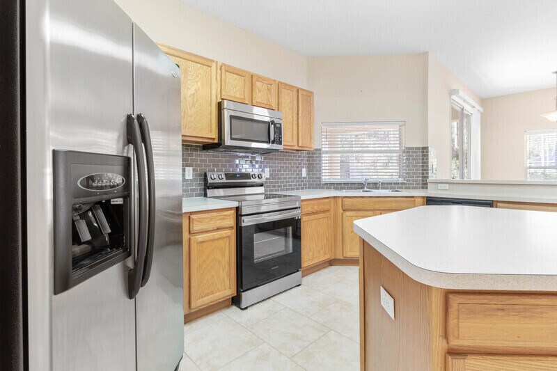 THIS FULLY FENCED 3 BEDROOM, 2 BATHROOM HOME FEATURES ALL TILE AND WOOD FLOORING THROUGHOUT... HUGE KITCHEN WITH STAINLESS STEEL APPLIANCES, TILE BACKSPLASH, CENTER ISLAND, RAISED COUNTER BAR, AND BREAKFAST NOOK... SPLIT FLOOR PLAN, HUGE MASTER SUITE WITH DOUBLE SINK VANITY, ROMAN TUB, WALK-IN SHOWER AND WALK-IN CLOSET... FOYER, SPACIOUS LIVING/DINING ROOM COMBO, FORMAL FAMILY ROOM, SEPARATE LAUNDRY ROOM, 2 CAR GARAGE. LARGE COVERED/SCREENED-IN PORCH AND PRIVATE, FULLY FENCED BACKYARD. HOME FEATURES 3048 TOTAL SQ FT; 2318 LIVABLE SQ FT. LOCATED ON A QUIET CUL DE SAC IN THE POPULAR LEHIGH WOODS NEIGHBORHOOD, WITH EASY ACCESS TO SCHOOLS, SR 100, SHOPPING, TOWN CENTER, BEACHES, MAJOR HIGHWAYS, DAYTONA BEACH, AND HISTORIC ST AUGUSTINE... SOLID LANDLORD! AVAILABLE FOR IMMEDIATE MOVE-IN $2100 ON 3-YEAR LEASE $2150 ON 2-YEAR LEASE $2200 ON 1-YEAR LEASE