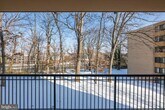 Charming and light-filled 2-bedroom, 1-bath residence located in the highly desirable Twenty-One community. This inviting home features an open, cheerful floor plan highlighted by a full-wall glass sliding door that floods the living and dining area with natural light. Unique patterned luxury vinyl plank flooring adds style and durability throughout the main living space. The spacious kitchen offers updated countertops, stainless steel appliances, a built-in microwave, and an L-shaped breakfast bar—perfect for casual dining or entertaining. Step outside through the sliding glass door to a wide private balcony with peaceful views, ideal for relaxing at the end of the day. Both bedrooms are generously sized with plush carpet and large windows. The primary bedroom includes a walk-in closet, and the full bath features a tub/shower combination. Residents enjoy an exceptional array of amenities including a fitness center, business center, media room, BBQ area, two swimming pools, tennis and volleyball courts, tot lots/playground, library, poker room, and a convenient shuttle to the Van Dorn Metro. One parking space is included. Pets will be considered on a case-by-case basis.