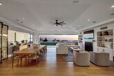 SUMMER RENTAL - 30 days minimum - Available June - September 2026. Nestled within the prestigious guard-gated community of Three Arch Bay, this contemporary masterpiece offers an exceptional summer vacation experience defined by luxury & design. Approximately 4,158 square feet, this 5-bed, 4.5-bath residence is thoughtfully designed with a reverse floor plan, allowing the home to live like a single story. The main living spaces—including the kitchen, living room, ocean-view deck, and front entertainment yard—are all located on the entry level. The open-concept living area is anchored by wide-plank white oak flooring & a retractable sliding glass wall that seamlessly blends indoor & outdoor living. Relax on the comfortable & cozy L-shaped sofa while enjoying sit-down panoramic views stretching across Catalina Island, San Clemente Island, & the iconic Dana Point Headlands. The chef’s kitchen is both functional & stunning—featuring a 10-burner gas range, double refrigerators, double dishwashers, dual sinks, & an oversized eat-up island. Elegant marble countertops, floating white oak shelving & custom cabinetry in white oak complete the space. Just off the kitchen & dining area, a temperature-controlled wine room sits behind a sleek custom glass wall, perfect for summertime entertainment. The entry-level primary suite is a private retreat, offering lay-down ocean views through a sliding glass wall. The suite includes a spacious walk-in closet with its own stackable laundry, as well as a luxurious ensuite bath with a large walk-in shower, a freestanding soaking tub, & a private enclosed water closet. An additional guest bedroom with ensuite & a stylish powder room complete the upper level—totaling two bedrooms, two ensuite baths, & a powder bath on the main floor. The floating staircase leads to the lower level, where a comfortable family TV & playroom opens directly to the backyard. Downstairs, you’ll find three additional generously sized bedrooms, including a fun bunk room with three beds, along with two full bathrooms & a separate full-sized laundry room. The backyard is designed for privacy & leisure, surrounded by lush green hedging & offering a variety of outdoor amenities including cornhole, ping pong, & a comfortable seating area. As an added bonus, the rental includes a golf cart for easy access to the private beach & community amenities, allowing you to fully enjoy the coastal lifestyle that makes Three Arch Bay so sought after.