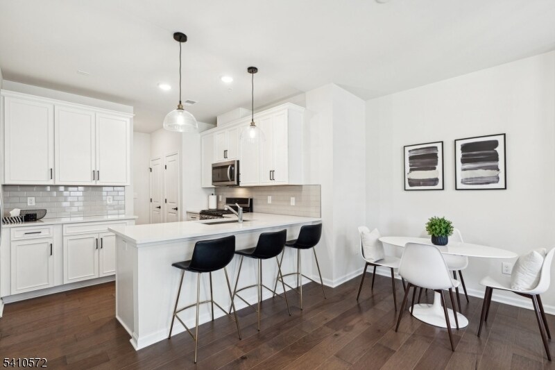 Fantastic townhome with 2 bedrooms and 3 full bathrooms offers a perfect blend of comfort, style, and functionality in a premier Union location with Kean University and Vermella Center around the corner and all of the benefits of restaurants, coffee shops and easy access to public transportation including Union Train Station and the Garden State Parkway. Step inside to the inviting foyer with a front door featuring a stunning full glass window. Spacious Living Area boasts high ceilings and two expansive windows overlooking a picturesque open green lawn. Dining Area transitions to gourmet Kitchen featuring top-of-the-line stainless steel Whirlpool appliances, eat-in island with quartz countertops and seating for 4, plus ample cabinet space with an additional pantry. A Full Bathroom with a vanity and shower, coat closet + direct access to a one-car garage complete 1st level. Ascend the stairs and discover a luxurious Primary Suite featuring a large walk-in closet, office nook and Primary Bathroom with a double vanity and a double-sized shower. 2nd Bedroom features double slider panel closet. Linen closet in the hallway a Full Hallway Bathroom with shower-over-tub; and a Laundry / Utility Room with a stacked Whirlpool washer/dryer complete upper level. Beyond your front door, enjoy the benefits of this fantastic community with tennis / pickleball courts and additional green space. An on-site outdoor pool and gym is also available via separate membership fee.