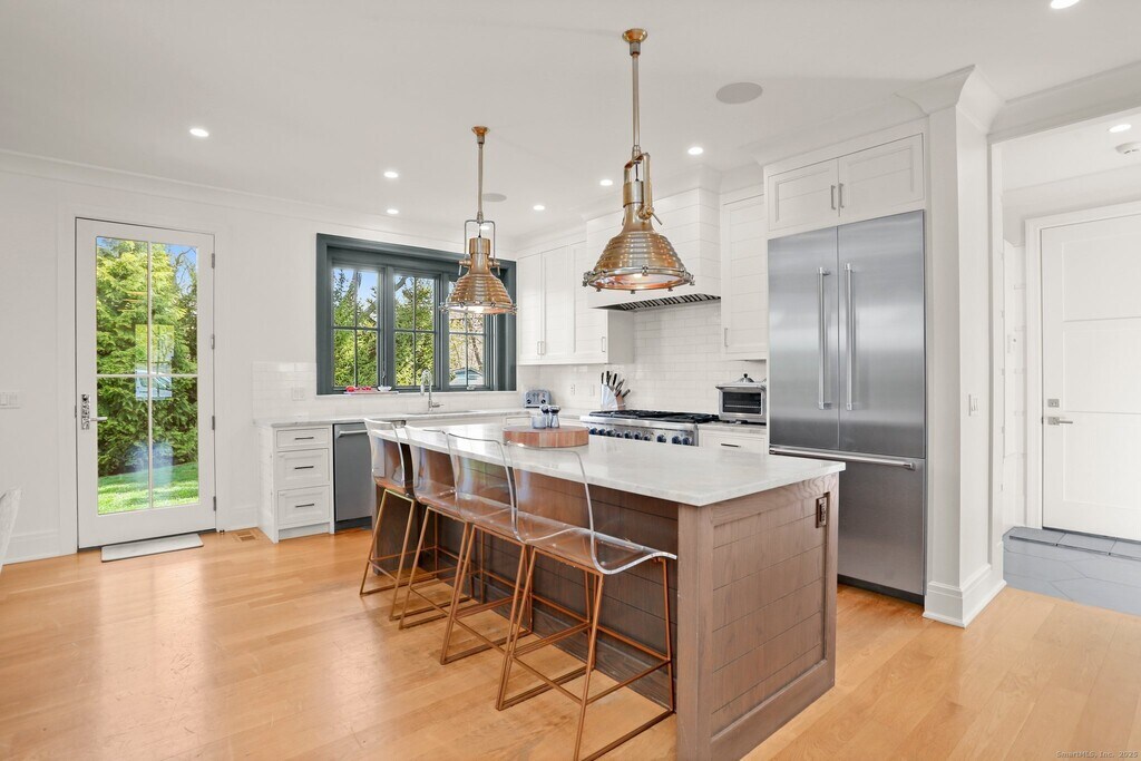 Call for Availability - Welcome to your 5 bed/bath dream residence located in the idyllic Compo neighborhood of Westport. This stunning home offers over 3900 sq ft of modern elegance living space, where sleek design and hand-crafted finishes flourish. The kitchen is a chef's delight with high-end appliances, custom cabinetry, along with a spacious island for your culinary creations and casual family dining. Abundant light-filled home office, dining room, butlers pantry with wet bar, and family room with fireplace open to the kitchen complete the ground floor. On 2nd floor you'll find 3 nice sized bedrooms, plus the luxurious primary suite. There you'll bask in its soaring ceiling, ample closet space, and a true spa-like primary bath experience.The private and finished 3rd floor can serve as a large playroom or 2nd home office.Fully-finished lower level with spacious bedroom/full bath and kitchen/living area offers fantastic opportunities as a family gathering area for viewing sports/movie nights, or a perfect in-law or au pair suite with total privacy. Located 1 minute from Longshore Park public golf/pool/tennis/paddle, and 2 minutes from Compo beach where swimming and sunsets await. Moments from Metro North train for easy/quick commuting, and downtowns wonderful shopping/dining options galore. MLS# 24140482