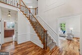 Tucked away on a quiet cul-de sac on a picturesque private lot with expansive deck, custom awning and framed by mature trees. A dramatic Sun-filled 2-story entrance Foyer with designer chandelier, crown moulding , rod- iron staircase welcomes guests into the home. The gourmet kitchen features LG stainless steel appliances, including a refrigerator/freezer with automatic water and ice dispenser, oven, ThinQ microwave, and dishwasher, plus a KitchenAid four-burner gas cooktop. Granite countertops, tumbled marble backsplash, ceramic tile flooring, and undermount stainless sink with an automatic soap dispenser complete the space. A sunlit breakfast room with a designer chandelier opens to a custom deck and private backyard. The adjoining family room offers a warm, inviting retreat with a gas-burning fireplace, recessed lighting, crown molding, and hardwood floor The main-level library with custom built-ins provides a sophisticated workspace and the formal living and dining rooms offer superb entertaining space. Upstairs, the primary suite serves as a private sanctuary with a sitting room, dual walk-in closets, and a spa-inspired bath featuring custom stone flooring, a dual-head shower, and elegant finishes. The finished lower level adds versatility with a fully finished recreation room/media room, with private stairs to the rear yard, second home office/guest room, storage and gym. A true standout in one of Rockville’s most sought-after communities—offering luxury, comfort, and convenience close to top schools, shopping, dining, and commuter routes.