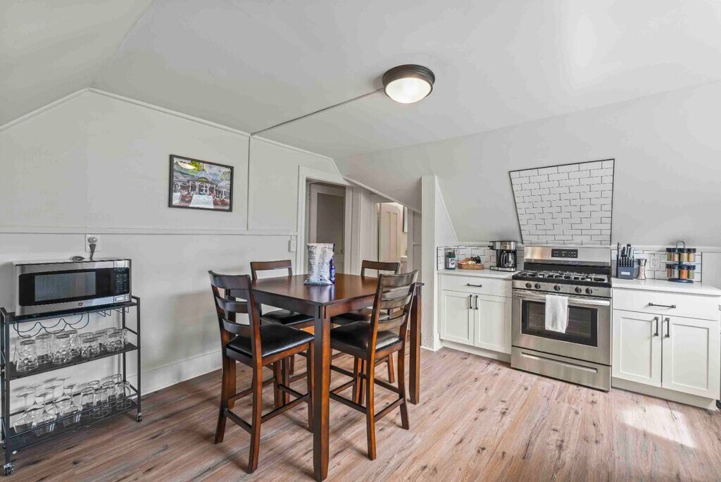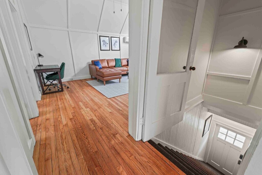 ***Available for move-in starting November 5th*** A rare opportunity for customization. This residence can be leased either unfurnished or with a designer furniture package tailored for comfortable, turnkey living. Contact us for details on the furnished pricing. *Furnished rate available upon request! Experience an equestrian/polo Saratoga vibe here at this historic newly updated second floor 2 bed/ 1 bath, ~850² Saratoga Stay by Green Springs. Positioned in the heart of downtown, walkable to downtown or the Saratoga Race Course, this location, easily accessible to the best Saratoga has to offer, can't be beat. Just a convenient few steps from the parking lot will find you at the entrance of this second floor unit. We have carefully outfitted the space with all of the accommodations you'll want or need for relaxing, cooking, dining, sleeping, bathing, working or web surfing. â—Private Outdoor Balcony Seating •Laundry -shared/on site •Fully outfitted kitchen •Towels/linens provided •Shared furnished front porch •Work from home accommodations •Coffee, groceries, movies, dining a few short blocks. •NONsmokers Strictly! •3 person Occupancy max Lease Lengths Available: 6, 9 or 12 months ANIMALS: Animal friendly - max 2 ≤50lb total animals weight limit NEIGHBORHOOD: This property is ideally positioned between a quiet neighborhood on the backside and the invigorating bustle of Saratoga from the front. Mere blocks of easy walking to either Saratoga's race course or downtown Broadway's shopping, dining, parks and nightlife. At the top of the entry stairway, a left will lead you through the full kitchen towards the full bathroom or through an exterior door out to the private balcony perfect for morning coffee and evening wind downs. A right at the top of the entry stairway will find you in the living room across from the next door Queen bedrooms all outfitted with ceiling fans and Roku TVs. Transom windows and vaulted ceilings provide an expansive yet cozy feeling filled with warm natural light yielding a clean, open, relaxing environment. BEDROOMS: For sleeping there are two bedrooms next door to each other each outfitted with a Queen bed with plentiful pillows and warm cozy seasonal layers. KITCHEN/ DINING: For meal time there is a high top kitchen table for 4 complete with place settings, plentiful bakeware and cookware as well as a shared outdoor grill for a wide variety of culinary prep wants and needs. Stocked with toaster, blender, coffee nook and all major stainless steel appliances including every chef's favorite, a gas range. BATHROOM: For bathing there is a beautiful newly renovated subway tile full tub/shower bath stocked with beauty care basics and plentiful bath linens. RELAXATION: For indoor relaxation you'll find board games along with Smart TVs powered by free high speed internet, complete with basic cable loaded with streaming services apps ready for personal login access. OUTDOORS: For outdoor enjoyment there is a private balcony just outside the kitchen with seating for lovely seasonal relaxation. There is also a shared charcoal grill stored in the back of the building for use in our shared outdoor space. ACCESS: This is a multi unit property. Each individual apartment has its own private secure entry. The entire unit is yours and in no way accessible to any other building occupants. PARKING: â—1 off-street parking space â—Free on-street parking. UTILITIES: Flat $225/Month fee ONE TIIME FEES: $250 cleaning fee