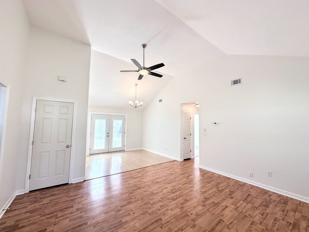 Charming, move-in ready home in North Augusta, South Carolina featuring vaulted ceilings and a bright, open living space. 3bedroom 2 baths split floor plan. Freshly updated with new paint and carpet (owner bedroom only room with carpet ) and lvp flooring throughout living areas and 2 guest bedrooms . Owner bedroom has a huge wall in closet. Kitchen with pantry and plenty of cabinet and counter space. Enjoy outdoor living on the covered front porch, a large fenced-in yard situated on a spacious lot— with patio on back perfect for entertaining, or relaxing in privacy. Additional features include a single-car garage and ample outdoor space with room to grow. Updated bathrooms with new fixtures and ceramic tile flooring. Conveniently located with easy access to local amenities- North Augusta Greenway paved walking trail. Shopping and restaurants nearby.