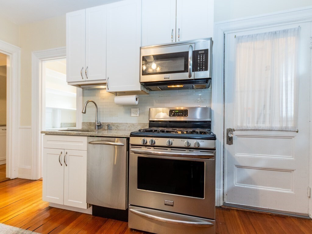 For rent in Watertown's historic district on a picturesque tree-lined street is this magnificent Victorian 2-family residence,which has been meticulously maintained and updated over the years. While preserving its authentic allure with features like detailed woodwork,stained glass windows,high ceilings,spacious rooms,built-in cabinets,original hardwood flooring,and wood shingles,this home offers modern comforts. This unit boasts contemporary eat-in kitchens with granite countertops,stainless steel appliances,and renovated bathrooms. The ground floor welcomes you with a full equipped kitchen with pocket doors,a butler's pantry,two fireplaces,an in-unit washer/dryer,and direct access to the beautifully landscaped backyard. Located conveniently near Victory Field,public transportation,the mass pike,and the newly developed Arsenal yards teeming with excellent dining and shopping options. Consider this your invitation to a luxurious rental experience. MLS# 73491344
