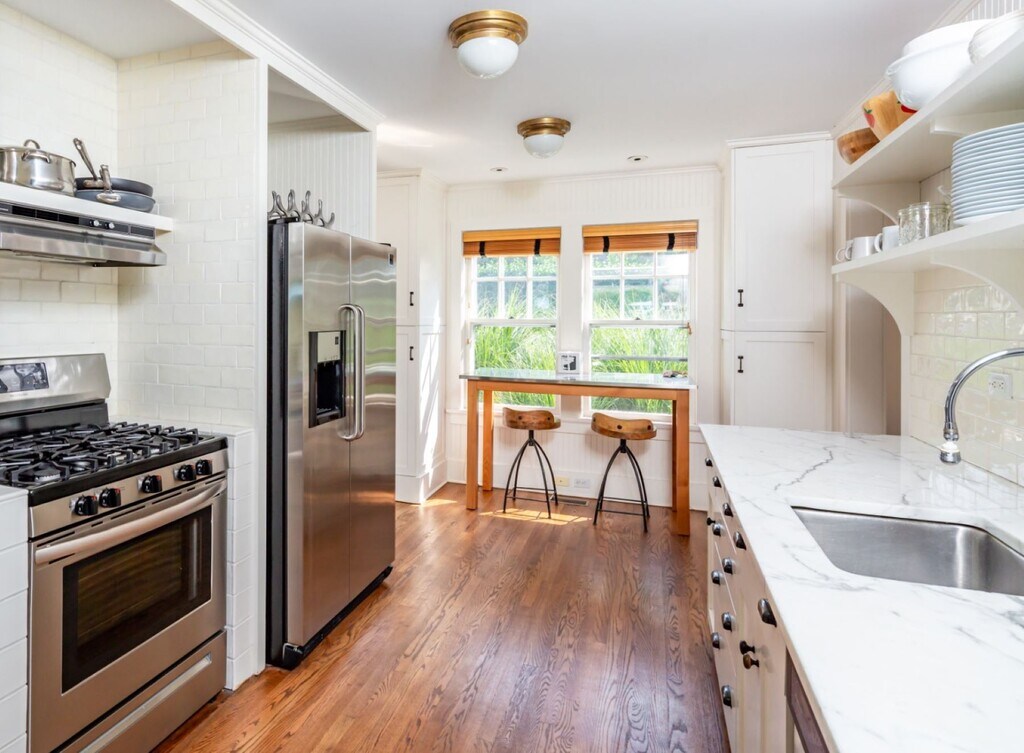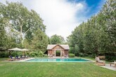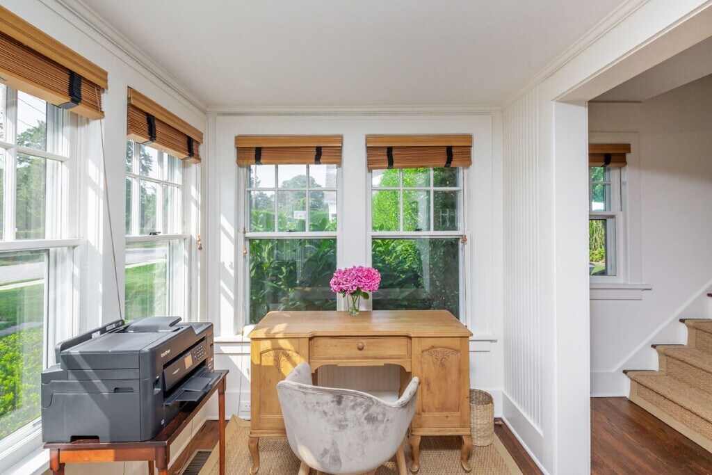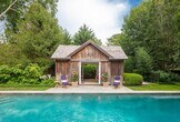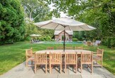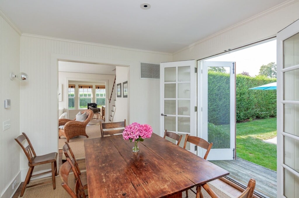 Welcome to 40 McGuirk Street, a modernized 1920s farmhouse on a deep half acre with heated gunite pool, pool house and detached two-car garage. This East Hampton Village home is privately situated behind matures hedges and trees. The first floor features a window-surrounded sunroom at the front, a spacious living area with a jetty stone wood-burning fireplace, dining room with its outside-leading French doors, separate office nook, and eat-in stainless kitchen at the center, and a practical mudroom with laundry, coat closet, full bath and tile floor at the rear. The second floor boasts three well-proportioned bedrooms with multiple windows, and two full baths each with porcelain pedestal sinks, built-in medicine cabinets, step-in glass showers, high-end tile work and elegant fixtures. Directly behind the house stands the stately two-story garage that comfortably fits two-cars. Centered in the far end of the property is the heated gunite pool and picturesque pool house, with bluestone hardscaping connecting the two. Pool house has a vaulted ceiling with a large skylight, air conditioning, mirrored walls, wet bar with wine fridge and ice maker, custom shelving and hooks, powder room and secluded outdoor shower, as well as a beautiful masonry walkout to the basement area below. Three separate bluestone patio spaces dot the manicured lawn from the front to the rear, ideal for al fresco dining, entertaining and lounging. Additional amenities and modern conveniences include central air-conditioning, irrigation, street gas and street water. Located on a quiet and coveted lane very close to the shops, restaurants, and ocean beaches. Rental Terms: July: $65,000 July - Labor Day: $135,000 June: $30,000 Memorial Day - Labor Day: $150,000 August - Labor Day: $75,000 Other / Short Term - Year Round: $150,000