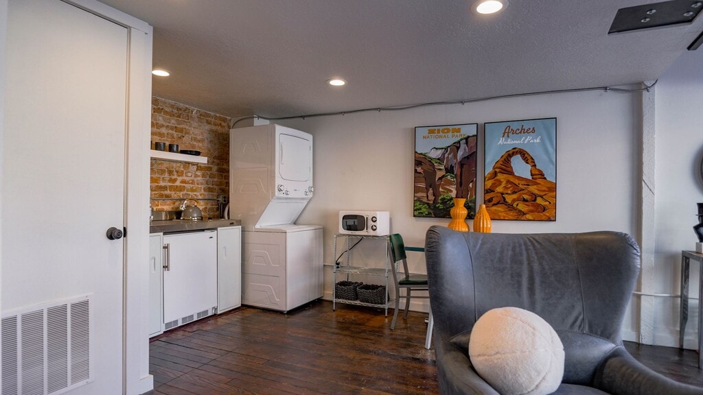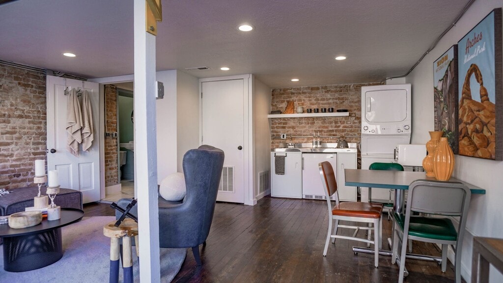 Trendy, fully furnished loft in historic downtown Provo! Enjoy a stylish lifestyle at this centrally-located loft apartment, with access to gym/recreation, dining, local arts and so much more - in every direction! This unit has an artistic feel and unique features you're sure to love, including a pulley system for the stairs that lead to the loft, enabling you to fully open up the lower level living space when entertaining guests! Deposit and utilities will vary, based on length of lease:: Short Term Lease (1-5 mos.): - Utilities will not be moved to tenant name and will be billed back in one single charge. - Deposit is $800; fully refundable after cleaning/patch/paint. Long Term Lease (6-12 mos.): - Tenant responsible for moving utilities to their name, and added cost of city utilities and internet applied to ledger each month. - Deposit is same as rent (OAC), fully refundable after cleaning/patch/paint. - Community fee of $75 billed to ledger, to cover water/sewer/trash. - Internet: 1gb speed through Veracity. Billed to ledger at $60/mos. Short Term Fee: Based on lease term; see below: —> 1-3 months: $300/month —> 4-6 months: $200/month —> 7+ months: No added fee Pet friendly with additional non-refundable pet deposit per pet, and monthly pet rent per pet (up to 2). Cost varies based on animal details. If applicable, please inquire for specific info. NO SMOKING OR VAPING IN THE UNIT OR NEAR THE BUILDINGS. Application Process: - $40 fee per adult 18+. - Minimum 625 credit score and clean background. - Income should be minimum 3x rent (combined of all adult applicants). - Will require proof of income and 2 references per adult applicant (1 employer and 1 previous landlord).