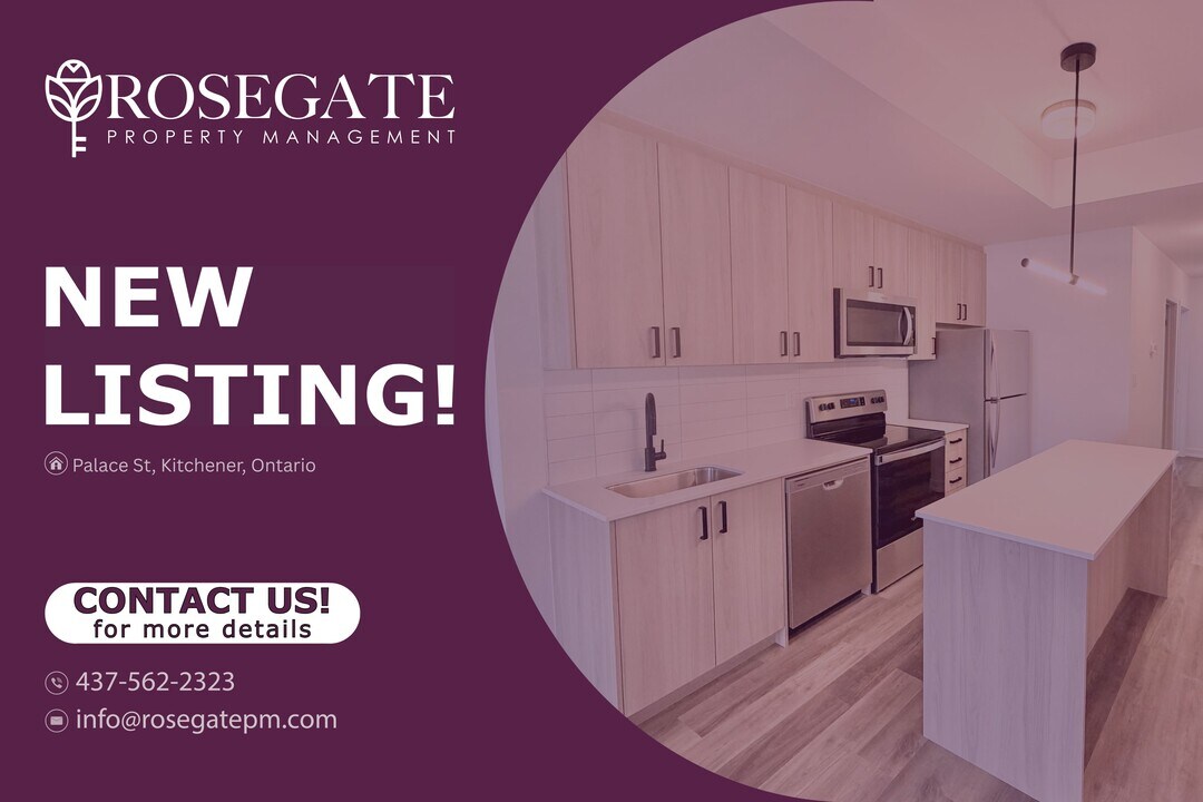 Modern Apartment with Private Balcony & In-Unit Laundry – Pet Friendly – Kitchener Welcome to Palace Street, Kitchener — a well-maintained apartment offering comfortable and modern living space.This unit features a functional layout, ideal for professionals or individuals seeking a clean and convenient home.The kitchen is equipped with stainless steel appliances, providing a sleek and practical space for everyday use. The unit also includes in-unit washer and dryer, along with central heating and air conditioning for year-round comfort.Step out onto your private balcony, perfect for relaxing and enjoying fresh air.Small pets are welcome, making this a great option for pet owners.Located in a desirable Kitchener neighbourhood close to transit, shopping, parks, and everyday amenities, this professionally managed rental offers both comfort and convenience.Book your viewing today.