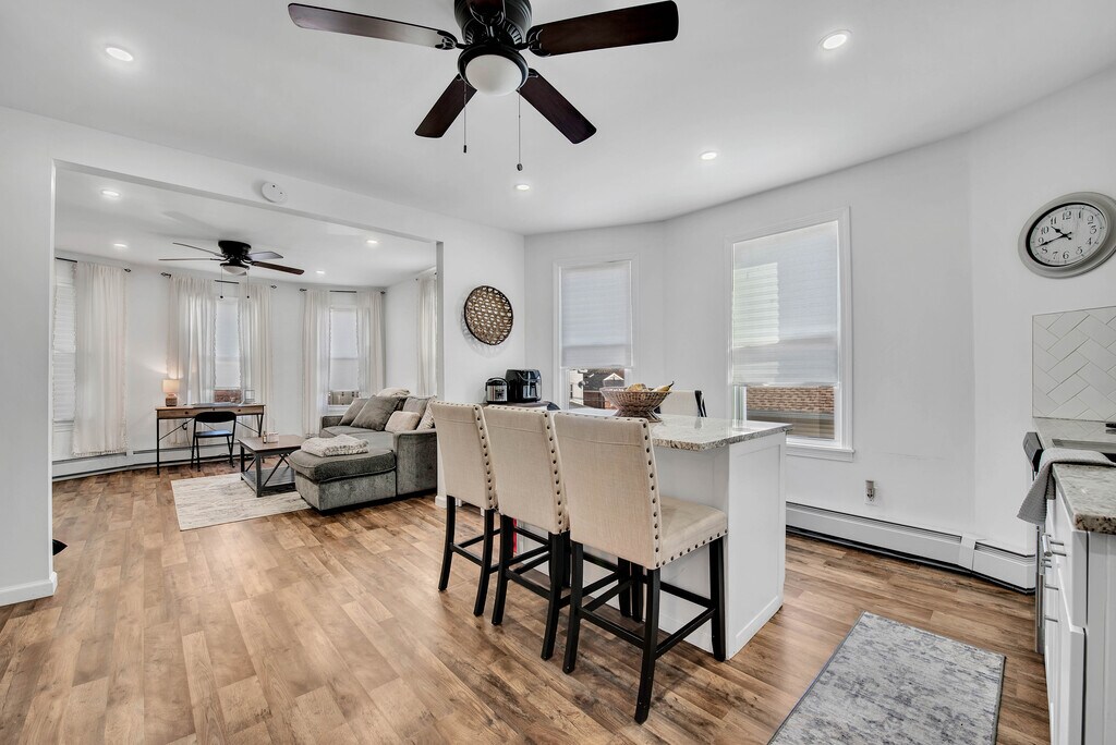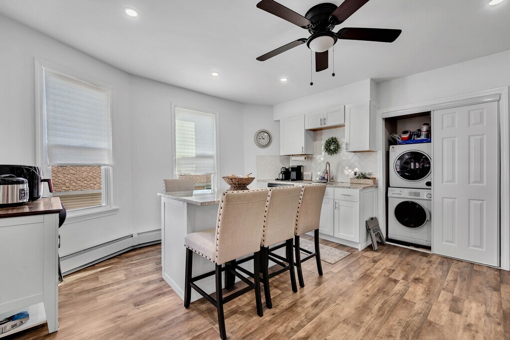 Fantastic second floor unit in this three family home. Granite countertops and center island. Stylish tile backsplash and stainless appliances.. Custom cabinets and recessed lighting throughout. Two bedrooms. Washer and dryer. Three season detached front porch. Quiet, desirable neighborhood.