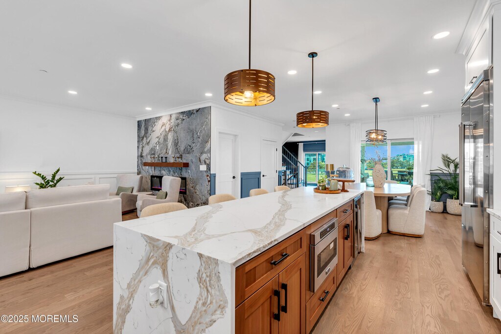 THE ULTIMATE SUMMER RENTAL IS NOW AVAILABLE! Welcome to your dream beach house retreat! This stunning new construction offers over 5,000 square feet of luxurious oceanfront living,with direct ocean views from every single room. The home features 5 spacious bedrooms,3.5 beautifully designed bathrooms,and plenty of parking with a 3-car driveway and a garage. Every level has its own covered porch,perfect for soaking in the coastal breeze and incredible viewswhich only get better as you go higher. A private elevator makes moving between floors effortless.The home is packed with high-end finishes throughout.The kitchen is a showstopperfeaturing a 12' quartz island,a waterfall 10' quartz counter,and top-of-the-line Viking appliances. It's truly a chef's kitchen. You're just a 10-minu te walk to the restaurants,bars,and shops at Pier Village,and a 12-minute drive to the ferry to NYC (a quick 50-minute ride). Available June- Sept @60K/month