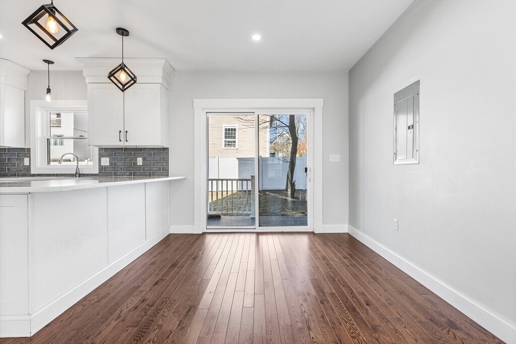 Available NOW! Modern townhouse-style condo offering 3 bedrooms and 2.5 baths,including a primary suite with rain-shower bath. Rental features include: a shared fenced-in yard,two-car driveway parking,a private back deck off the kitchen. The unit itself has a lovely bright interior with custom trim work throughout,stainless steel appliances,quartz countertops with soft-close cabinetry,hardwood floors,central heat and A/C,and in-unit laundry. Open layout with excellent natural light and tasteful modern finishes. Located on a quiet residential street with water views and trails directly across the street. However,easy access to Downtown Boston and Logan Airport. Convenient access to the T (Orient Heights Blue Line station),and ferry service to the New England Aquarium. Immediate occupancy available. Tenant to pay utilities (gas electric and wifi). Pets flexible. Strong credit and references required. MLS# 73470448