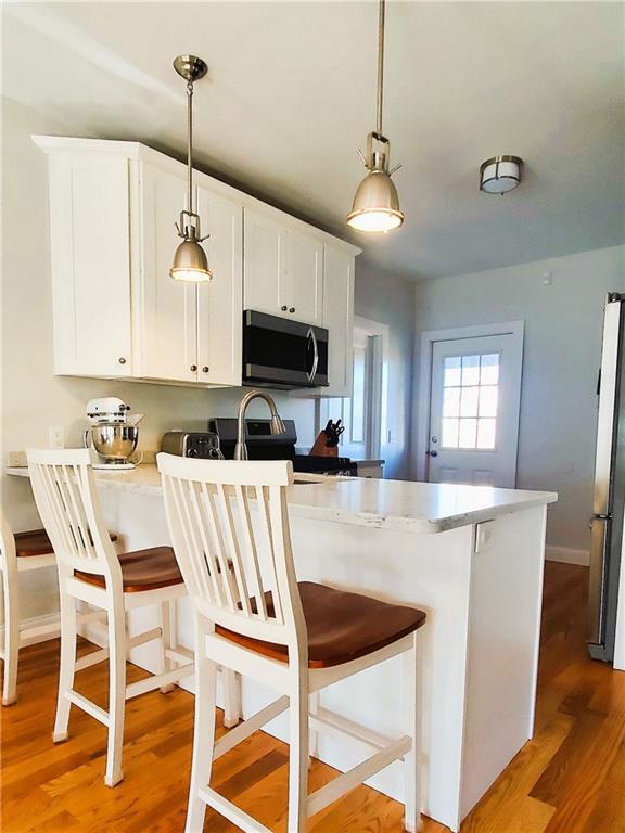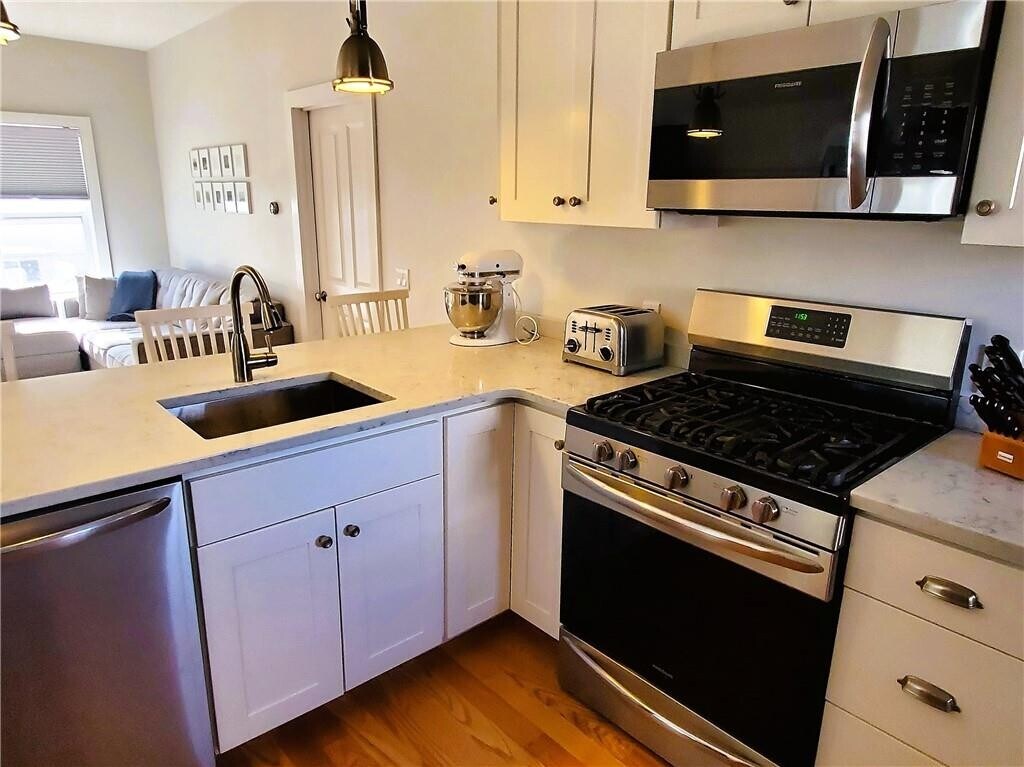 Step into this hidden,fully renovated first-floor gem,where every detail shines from the moment you walk in. This home offers a sleek,modern aesthetic paired with all the must-have amenities for today's renter. Enjoy shiny hardwood floors,an abundance of natural light,and a beautifully updated kitchen featuring top-of-the-line appliances,granite countertops,and a stylish breakfast bar. The inviting back porch is perfect for summer cookouts and relaxing evenings. Practical perks? This unit has them all: in-unit laundry,efficient gas heating,easy parking,and even a spacious bonus room in the primary bedroom. Don't miss the chance to call this exceptional space home! MLS ID 1405257