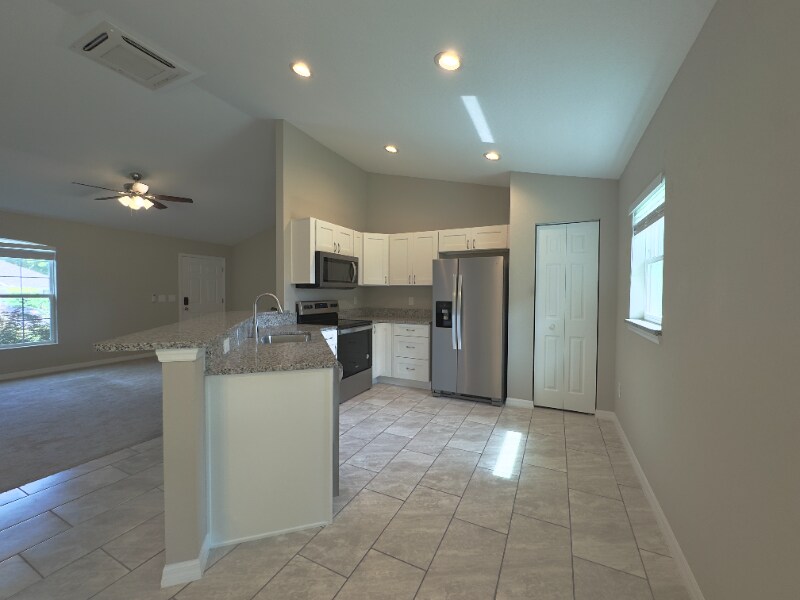 Property Id: 2147053 Rent-to-Own - 40 Water Track Dr, Ocala, FL 34472 3 bed • 2 bath • 1,284 sq ft 2023 new construction, block-built and move-in ready. Split plan with cathedral ceilings; chef's kitchen with stainless steel, granite, soft-close wood cabinets, and an 8' serving counter. Sliding door opens to an enclosed lanai for indoor/outdoor living. Primary suite with walk-in closet and custom-tiled bath; tile in wet areas, carpet elsewhere. 2-car garage with epoxy floor and 2 remotes. Upgraded lighting/plumbing throughout on a generous lot. Program terms: No credit check! $15K option fee down (applies 100% to price) $1,995/mo rent, 3-year lease. On-time payments earn a $175/month purchase-price reduction. Purchase price: $273,000. Tenants handle utilities, maintenance, repairs, and yard care. No smoking. $50 application fee per adult; income/employment and references verified. Build equity while you live here—message us to schedule a walkthrough and start your path to ownership today.