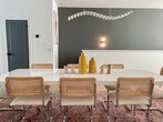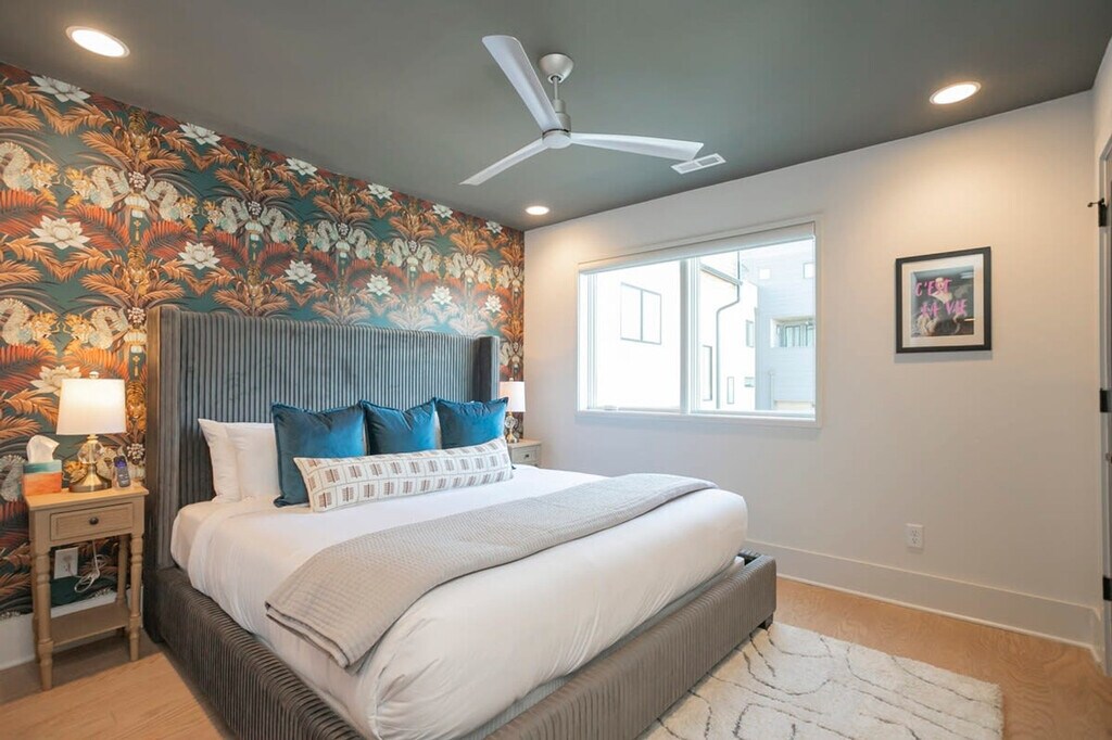Experience the best of Nashville in this stunning, professionally designed 4-bedroom, 4.5-bathroom haven. Enjoy walkable access to vibrant restaurants, cafes, and shops, with Downtown just a 10-minute drive away. Unwind in the spacious living room, bonus party room with wet bar, or rooftop deck offering breathtaking city views. This apartment includes a two-car garage for guests, perfect for groups seeking a memorable stay. This beautifully designed townhome is both open and inviting, providing ample room for comfort and relaxation. Ideal for large groups celebrating special occasions or creating lasting memories, the townhome features four full bathrooms and a half bathroom, ensuring everyone has ample space to prepare for a night out in Music City. Enjoy upscale amenities that enhance your experience, including a fully equipped kitchen with a gas range and stainless steel appliances, smart TVs in the living areas and bedrooms, and spacious closets. The pièce de résistance is the expansive deck, offering breathtaking views of Nashville’s vibrant landscape. Guests who stay 3 weeks or longer will incur an additional cleaning fee. This is not included in the pricing you see but will be an additional add-on fee. Optional concierge services are available by request, including a stocked refrigerator and in-home chefs. Sylvan Heights is an established and trendy neighborhood located just west of downtown, approximately a 10-minute drive. This home is within walking distance to several Nashville favorites like Edley's, Pancho & Leftys, Star Bagel, Park Cafe, and Sylvan Supply, which includes Punk Wok, Bearded Iris, Ginger Kitchen, coffee shops, and shopping. A golf course is conveniently located across the street. The area is centrally located to go anywhere but also situated in a great spot if you want to hang locally. Smoking is not allowed inside or within 25 feet of the property. A $500 fee will apply if smoke of any kind is detected in the home. Early check-in or late check-outs must be pre-arranged. Any non pre-arranged late check-outs will result in withholding of deposit. The only way to guarantee an early check-in is if the night prior to your stay is available, it can be blocked off for you at half the price. The same goes for late check-out, if there is no one booked the night of your check-out date, the night can be blocked off for a guaranteed late check-out at half the price. Please make sure all doors are shut and locked when not in use and do not leave any valuables in your vehicle if parked on the street. Primary Guest must be 21 years or older. Your photo ID information must match the information on your credit card. The home includes Wi-Fi and smart TVs, providing a comfortable environment for remote work. Registration Number: [SI]