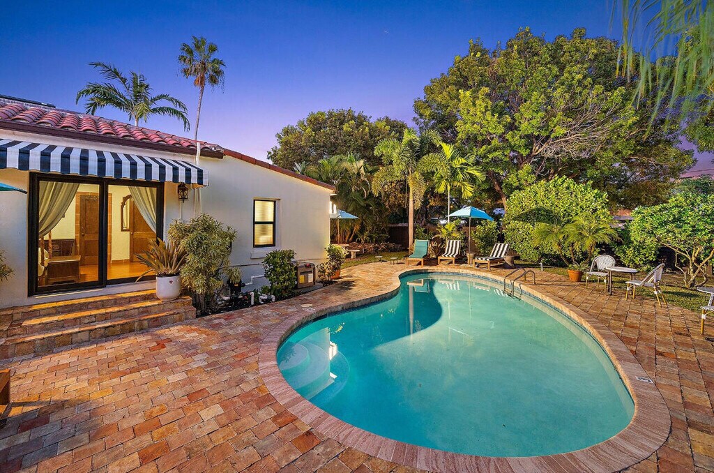 Available for annual or seasonal lease, this fully furnished, turnkey charming and rare historic property was built in 1945, and is nestled in the highly sought-after Old Northwood Historic District. Set on an expansive 12,598 SQFT double corner lot just one block from the Intracoastal, this beautifully updated Mediterranean estate combines timeless charm with modern comforts, including impact windows and doors, solar panels, and exceptionally low utility costs. The property features a Main House plus two fully remodeled cottages equipped with full kitchens and baths. Enjoy a large private fenced backyard, a spacious outdoor dining area, and a resort-style pool surrounded by lush landscaping perfect for hosting and entertaining. Just minutes from downtown West Palm Beach and CityPlace and