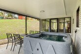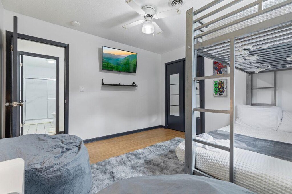 Experience the charm of Sevierville with this cozy mountain escape, just minutes from the heart of the city. This beautiful home offers the perfect blend of comfort and convenience, making it an ideal base for both relaxing getaways and adventure-filled trips. Unwind in your inviting retreat after a day of exploration. Enjoy amenities such as A/C, a fireplace, internet, Wi-Fi, a smart TV, a fully equipped kitchen, a hot tub, a patio, and a sunroom. A complimentary bottle of wine is provided by your host to enhance your stay. Free parking is available for up to 3 cars. Dogs are welcome with a 40lb weight limit and a pet fee of $100 per stay. Enjoy easy access to some of the area's most popular attractions, including Dollywood and The Island in Pigeon Forge, just 7 miles away. For nature enthusiasts, a scenic 14-mile drive will take you to downtown Gatlinburg and the Great Smoky Mountains National Park, where breathtaking trails, waterfalls, and wildlife await. At least one guest must be 21 years or older, with proof of age required at check-in. A state identification card or driver's license copy will be requested upon booking. For same-day late check-ins, host approval is needed before booking. This is a non-smoking house, and any violation of the smoking policy will incur a $400 fine plus cleaning costs to remove smoke odors. Guests are financially responsible for any property damage during the rental period. No firearms, fireworks, or ATVs are allowed. The house is located in the mountains of East Tennessee, where wildlife such as deer, bears, raccoons, snakes, and bugs may be encountered. Admire wildlife from a safe distance and do not feed them to preserve their natural state. [SI]