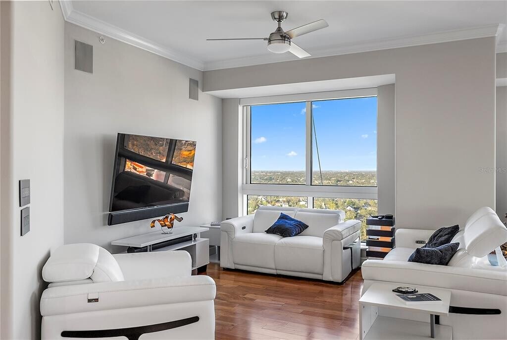 400 Beach Drive: A premier address in downtown St. Petersburg,400 Beach Drive is one of the area's most coveted luxury high-rise condominium buildings. Nestled along Beach Drive,this exceptional 22nd-floor residence offers three bedrooms,three full baths,and one half bath,along with two secure parking spaces (one equipped with an EV charger) on the 3rd floor.Upon entering the private elevator foyer,you’re immediately greeted by breathtaking,panoramic views of Tampa Bay and the sparkling downtown St. Petersburg skyline. Enjoy tranquil sunrises from your expansive east-facing terrace,views of downtown Holiday firework shows and special events from the comfort and privacy of your home. The residence has been meticulously updated with high-end custom finishes. The gourmet kitchen features automatic upper cabinets,deep lower drawers,a double beverage cooler,built-in Miele coffee maker,pull-out pantry drawers,Miele dishwasher,stainless steel refrigerator,built-in oven,and induction cooktop. The sleek design is complemented by quartz countertops,a glass tile backsplash,and under-cabinet lighting,as well as a custom bar with dimmable lighting for a touch of elegance.Floor-to-ceiling windows throughout the unit frame stunning views from nearly every room. The luxurious owner's suite is a serene retreat with terrace access,a spacious walk-in closet with custom built-ins,and a spa-like bath featuring a large soaking tub,separate shower,and dual vanities. The second and third bedrooms offer en suite bathrooms,ample custom storage,and generous closet space.Additional conveniences include a large utility room with a high-capacity washer and dryer,a newer water softener,and zoned HVAC systems with new electronic air purifiers for added comfort.Residents of 400 Beach Drive enjoy a full suite of resort-style amenities,including an on-site manager,private lobby access,a state-of-the-art fitness center with newer equipment,locker rooms,a heated swimming pool,spa,grilling station,and an abundance of outdoor seating and lounge areas. The community also offers a large social room with a catering kitchen,billiards and media rooms,outdoor fireplace and private direct access to Beach Drive from the amenities deck.Perfectly situated for those who enjoy a vibrant,walkable lifestyle,residents have easy access to world-class dining,museums,the Pier,waterfront parks,shopping,and year-round events. For commuters,400 Beach Drive offers excellent accessibility to major roadways,with convenient access to 5th Ave N and nearby interstate connections,ensuring less time spent on the road and more time enjoying luxury living.All room measurements should be verified by the tenant. Flat-screen televisions and sound system are included. Please note: No pets or smoking are allowed,and HOA approval is required. MLS# TB8466530