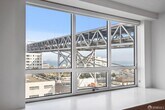 Experience stylish city living in this chic two-bedroom condo featuring stunning Bay Bridge and water views from the living room and both bedrooms. Located in Bridgeview, a full-service luxury high-rise, residents enjoy 24-hour front desk security, a fitness center, lap pool, and a scenic skydeck with BBQ. Residence #907 blends classic and contemporary design, highlighted by rich Brazilian cherry hardwood floors, recessed lighting, and custom built-ins. The spacious kitchen offers cherry cabinetry, granite countertops, stainless steel appliances, and a gas range. The primary bedroom features a walk-in closet and direct access to a balcony overlooking the Bay Bridge. The ensuite bath includes a limestone double vanity. The second bedroom is generously sized and also enjoys beautiful views. In-unit washer/dryer included. Parking available for an additional monthly fee. Owner covers water, trash, and sewer. Tenant responsible for PG&E, cable, and building move-in fees.