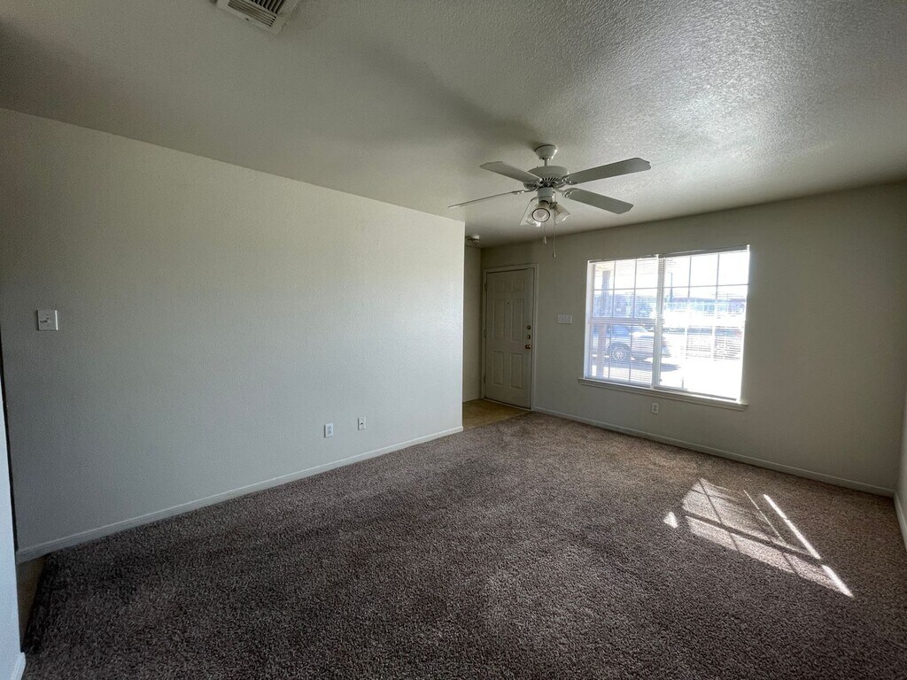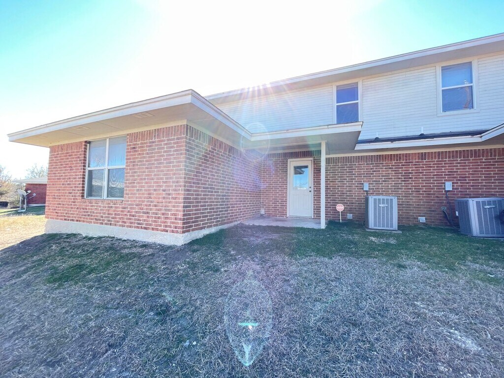 View 360° virtual tour: This 2-bedroom, 1.5-bath townhome-style apartment for rent in Harker Heights, TX offers a practical two-story layout with comfortable finishes throughout. Carpeted living areas, stairs, and bedrooms create a cozy feel, while vinyl flooring in the kitchen and bathrooms adds durability. The kitchen features traditional white appliances, including a dishwasher, along with an in-kitchen dining space. A convenient half bath is located downstairs, and washer and dryer connections are included. Upstairs, you’ll find both bedrooms and a shared full bathroom. Enjoy outdoor time with a covered back patio and access to a shared backyard. Appointments aren’t required to tour. Contact us or stop by our Killeen office to learn more and see this home in person once it becomes available! We are located at 1020 W Jasper Dr, Killeen, TX 75642.