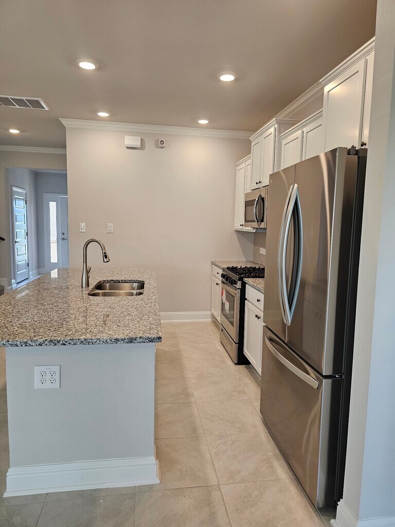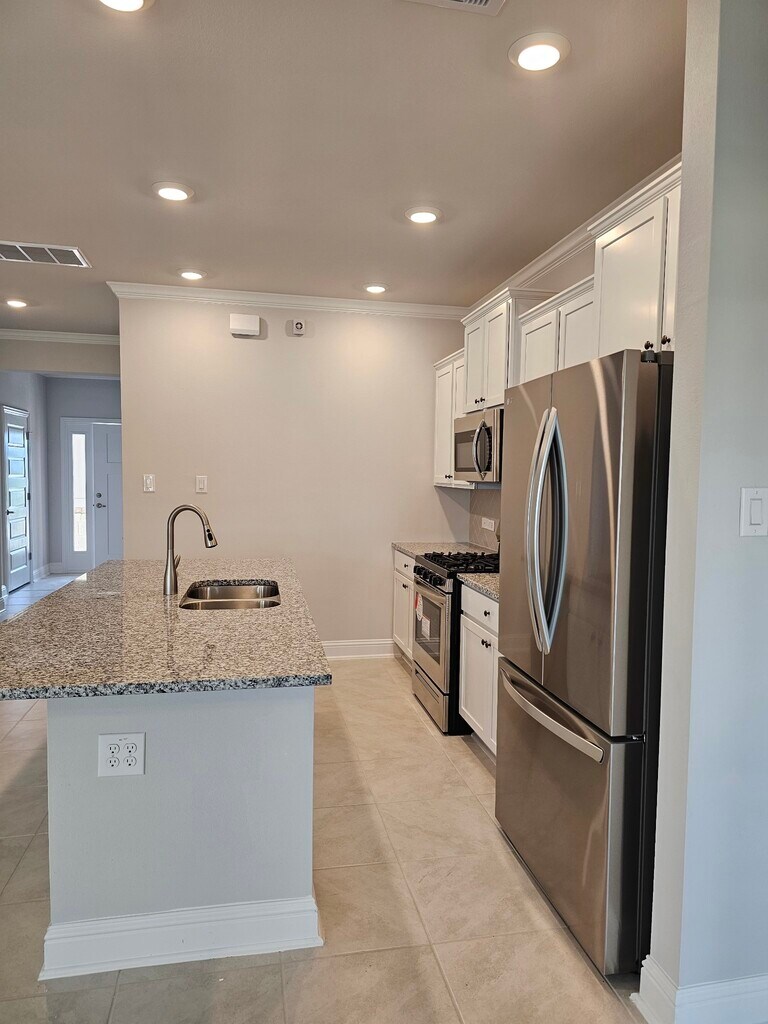 Stunning Home with Upgraded Stone,Brick & Front Porch Elevation! Energy Saving Home! Huge Cul De Sac Lot! Rear Outdoor Covered Patio! Grand Entry has High Ceilings trimmed with Crown Molding & Beautiful Large Tile Floors throughout! Family. Open concept Kitchen! Huge Backyard! Family & Casual Dining flows into the Gourmet Kitchen. Gorgeous Subway Glass Tile Backsplash,Massive Island,Beautiful Granite Countertops,Deep Double Stainless Steel Undermount Sinks,Stainless Steel Appliances & Walk In Pantry! Owner's Suite Tucked away downstairs W/Luxurious Bathroom with Huge Vanity,His & Hers Private Sinks,Deep Soaker Tub,Large Shower & Walk In Closet! Texas Size Game Rm,3 Large Private secondary Bedrooms,Hollywood Bathroom W/Double Sinks! This home has lots of windows which provides a lot of natural lights. Walking distance to the lake & Crystal Lagoon Brand new Samsung Washer,Dryer & refrigerator Included. MLS# 77424276