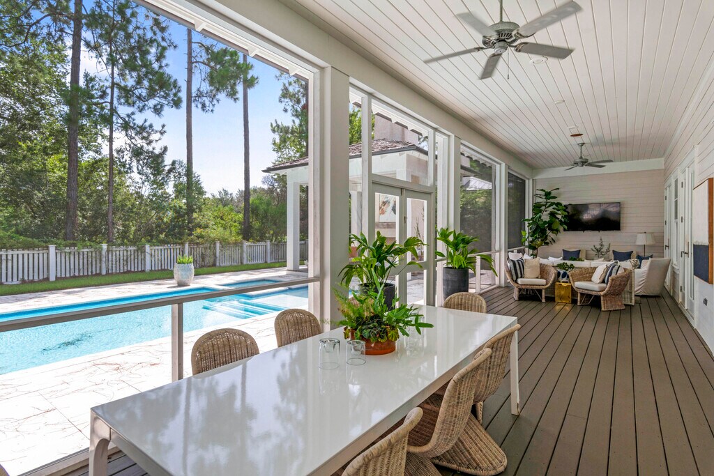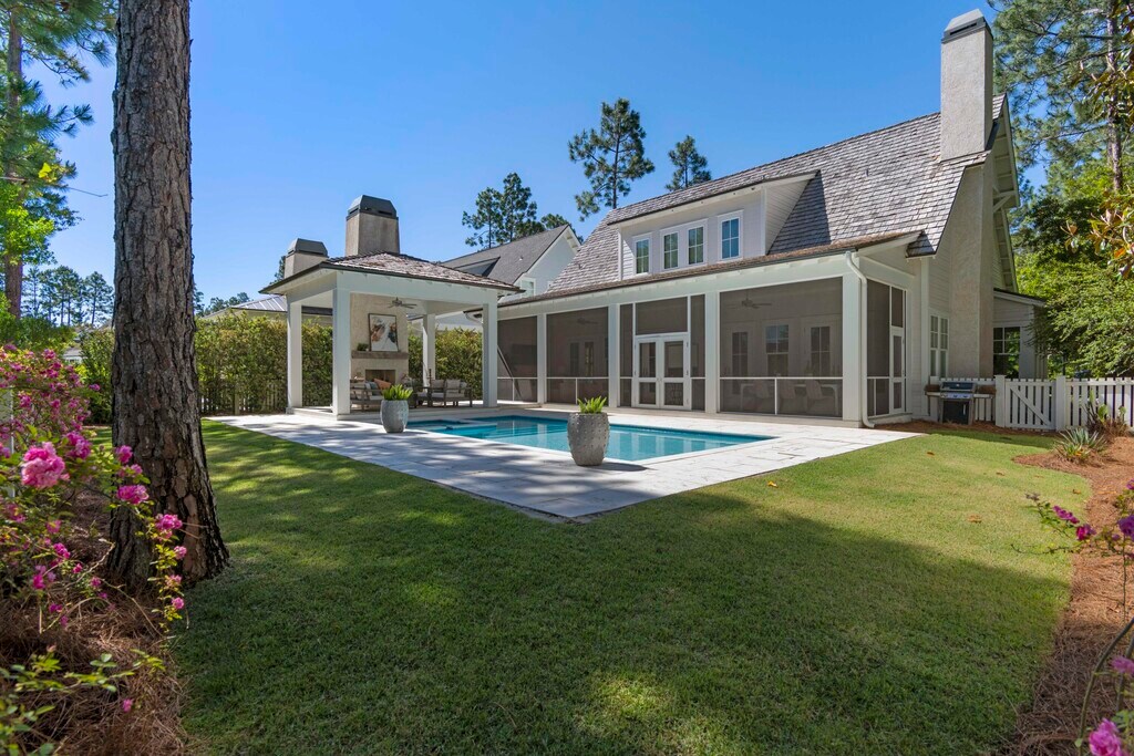 Perfect location in Watersound Origins. Extremely private while also near the golf course, community gym, pool, etc. This four bedroom home + bunk room has a great open floor plan, master on main floor, large laundry room, etc. The backyard is a phenomenal oasis featuring a large screened in back porch, private pool and covered outdoor fireplace. Watersound Origins is one of the premier neighborhoods in South Walton with lots of amenities and a convenient location to 30A, schools, 30Avenue, etc.