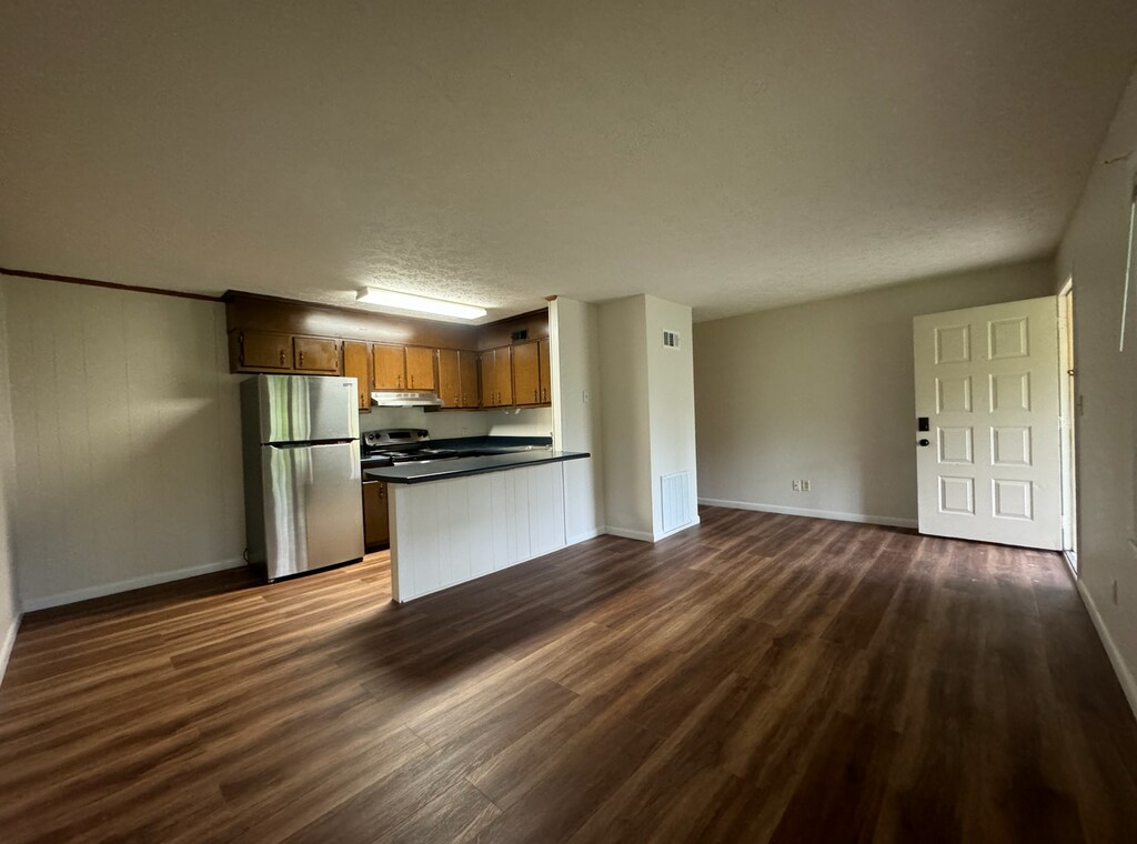 Apartment 1 is a top floor corner unit with only one shared wall off the living room for added privacy. The East Edge Apartments are a quiet community located just minutes from Exit 113 in Valdese. Apartment 1 includes a refrigerator and stove, wood-look flooring, fresh paint throughout, and a washer and dryer included in the monthly rent. This community is ideal for working professionals or anyone looking for a quiet place to retire. Water, sewer, and trash pickup are included in the rent. Electricity is the tenant’s responsibility. Cable internet is available through Spectrum. Application requirements include a credit score of 625 or higher, proof of income at least 2.5 times the monthly rent, and no amounts in collections.