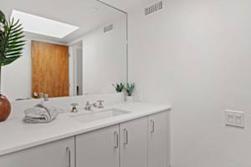 VACATION RENTAL - Available for Short Term Rental (28 days or more) Visit - to book direct or call Wake up to the warm Palm Springs sun and sip your coffee while taking in breathtaking mountain views. Welcome to the Belden Crist House—a masterpiece of mid-century modern architecture, originally designed as his personal residence by visionary architect Albert Belden Crist. This iconic home showcases striking design elements that reflect the timeless elegance of Palm Springs, blending history, luxury, and artistic flair into an unforgettable experience. The space Situated in the historic Movie Colony—once the favored escape of Hollywood’s elite—this home artfully combines luxurious living with architectural significance, offering guests a rare opportunity to experience the legacy of a true architectural pioneer. Step inside and immerse yourself in a space that celebrates both form and function. The living room, bathed in natural light from expansive windows, showcases artistic furnishings thoughtfully curated to honor Crist’s original vision. Plush seating, a fireplace, and one-of-a-kind design elements create an atmosphere that is both inviting and inspiring. The airy, modern kitchen is fully equipped with stainless steel appliances, sleek white cabinetry, and a Keurig coffee maker to start your mornings right. Whether you’re enjoying a casual breakfast at the cozy kitchen table with poolside views or gathering around the elegant dining table for eight framed by large sliding doors, every detail reflects the harmonious balance of comfort and craftsmanship. Venture outside to discover your private desert paradise—a luxurious retreat that perfectly complements Crist’s design philosophy. The backyard features an inground pool, a bubbling hot tub, and ample lounge seating for soaking up the sun. Fire up the grill for alfresco dining at the outdoor table for eight, then gather around the firepit to relax under the stars. The outdoor space is an extension of the home’s aesthetic, designed to enhance the Palm Springs lifestyle while maintaining an air of sophistication and relaxation. Staying at the Belden Crist House is more than just a getaway—it’s an invitation to live within a work of art. Discover the legacy of a master architect while enjoying the best of Palm Springs. Spend your days exploring world-class golf courses, hiking scenic desert trails, or visiting the vibrant local art scene. In the evenings, take a short drive to downtown Palm Springs for fine dining and entertainment before returning to your serene oasis. With its prime location, timeless design, and architectural significance, the Belden Crist House offers a truly unforgettable stay, where history and luxury intersect in perfect harmony. This home comfortably sleeps 8 guests between 5 private bedrooms. Bedroom #1 includes a king size bed, patio access, and an ensuite bathroom with a single vanity and a walk-in shower. Bedroom #2 includes a king size bed, patio access, a smart TV, and an ensuite bathroom with a dual vanity and a walk-in shower. Bedroom #3 includes a king size bed, a desk, patio access, and an ensuite bathroom with a single vanity and a walk-in shower. Bedroom #4 includes a king size bed, a desk, patio access, and an ensuite bathroom with a single vanity and a walk-in shower. Bedroom #5 includes a full size bed and patio access. This home also includes an additional full bathroom with a single vanity and a walk-in shower. THINGS TO NOTE: • Washer and dryer in home. • Driveway parking available for 4 vehicles. Please note that this home is only available for long term stays (29 days or 28 nights). A $10,000 security deposit per stay and a $2,000/month utility deposit are required for all reservations: The $2,000/month utility deposit must be paid before check-in and will cover utility costs, including pool and hot tub heating. Any unused portion will be refunded after checkout. If utility costs exceed $2,000/month, guests are responsible for the difference. Our Customer Care team will coordinate payment. The $10,000 security deposit will be refunded after a post-checkout inspection confirms no damages. Please feel free to reach out with any questions! • This home is equipped with two (2) external security cameras; (1) located on the carport and actively monitoring the driveway/carport parking area, (2) located on the back right corner of the house and actively monitoring the right side of the house towards the front gate. The location of this home is as appealing as its beautiful design. A quick drive will take you to Downtown Palm Springs with its central shopping district including vintage boutiques, interior design shops, chic restaurants, and art galleries. Palm Springs is also known for its mid-century modern architecture and has the largest collection of preserved architecture in the world. The town has Art Deco style luxury rentals, funky design and architecture, tall palms, and mountain backdrops. The mountains are of course nearby with the popular attraction of the Palm Springs Aerial Tramway, plus nature trails for hiking, horseback riding, and biking all around.