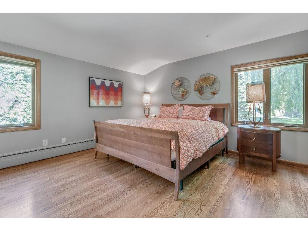 Spacious split-level Mid-Century North Tyrol Hills 3 BD/3BA home +office. Open floor plan, 2 wood burning fireplace and loaded with mid-century charm details. Large windows offering an abundance of natural light. Beautiful hardwood floors and natural woodwork. Formal dining room with original built in buffet. Primary bedroom with private 3/4 bath. Three bedrooms on one level. Lower-level walk-out family room, amusement room, wine cellar & newly remodeled hobby/guest bedroom with egress window. Large utility room with storage lockers. 2 car attached tuck under garage with EV charger installed. Fenced in back yard with patio, gazebo, pergola and perennial gardens. Many recent updates including air conditioning, and exterior painting. Owner to maintain lawn and gardens. Easy access to DT Mpls & Western suburbs. Pets on approval w/deposit, rental criteria will be provided. Rental insurance is mandatory. Owner will consider a short term 6 month lease and leases longer than 12 months