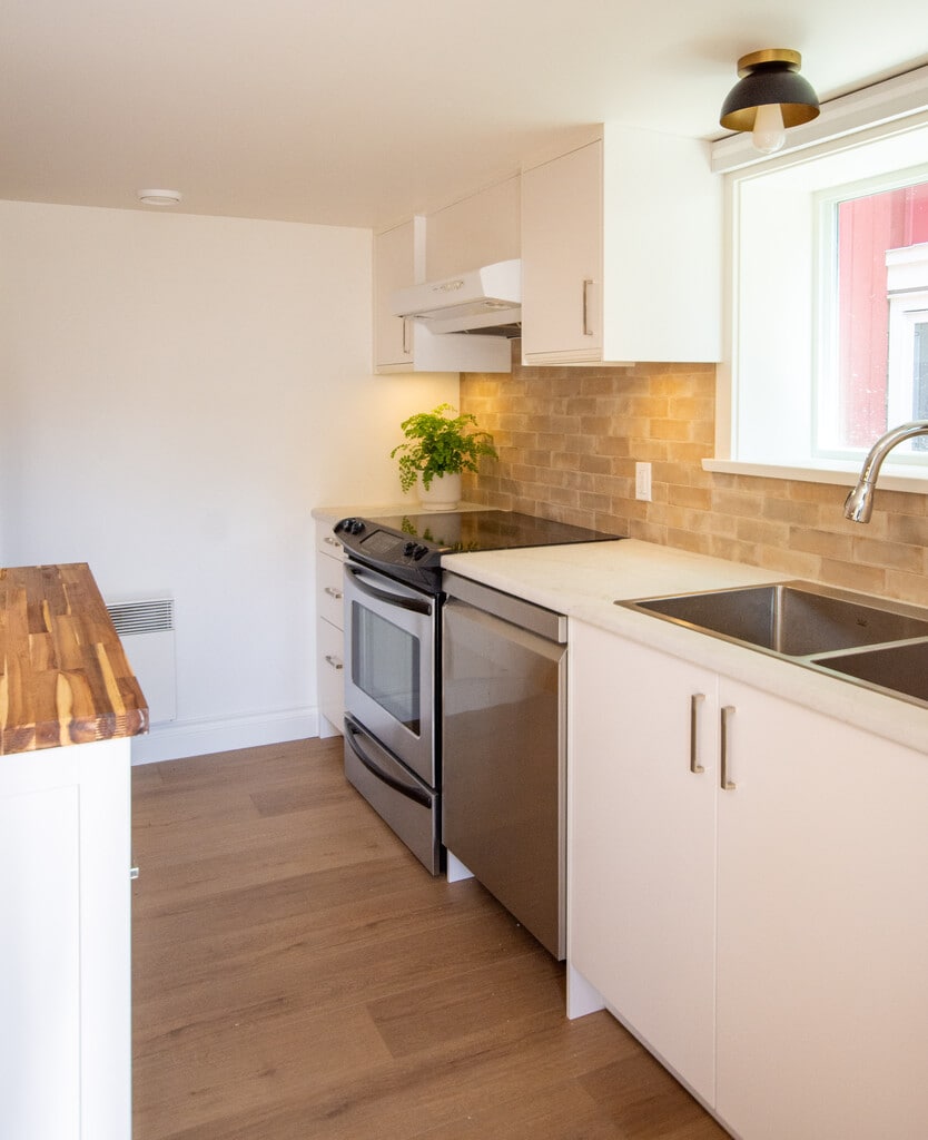 New, bright & sunny 1 bedroom, 1 bathroom suite. Completed in spring of 2025 Available December 1 (earlier date might be negotiable) Utilities included! 400 B Niagara Street in friendly James Bay. Very walkable to shopping and beach. A 5 minute walk to shopping areas in the village and 2 minutes to the beach. Brand new basement suite with in-suite laundry, dishwasher, fridge, electric range. Lots of storage space Pretty tiled bathroom with a bright shower, new fixtures and lots of drawers and space in the vanity. Large bedroom and lots of storage. Clean wood floors throughout. Sunny covered patio. 550 sq feet (51 sq m) Unfurnished, but willing to discuss furnishing the space
