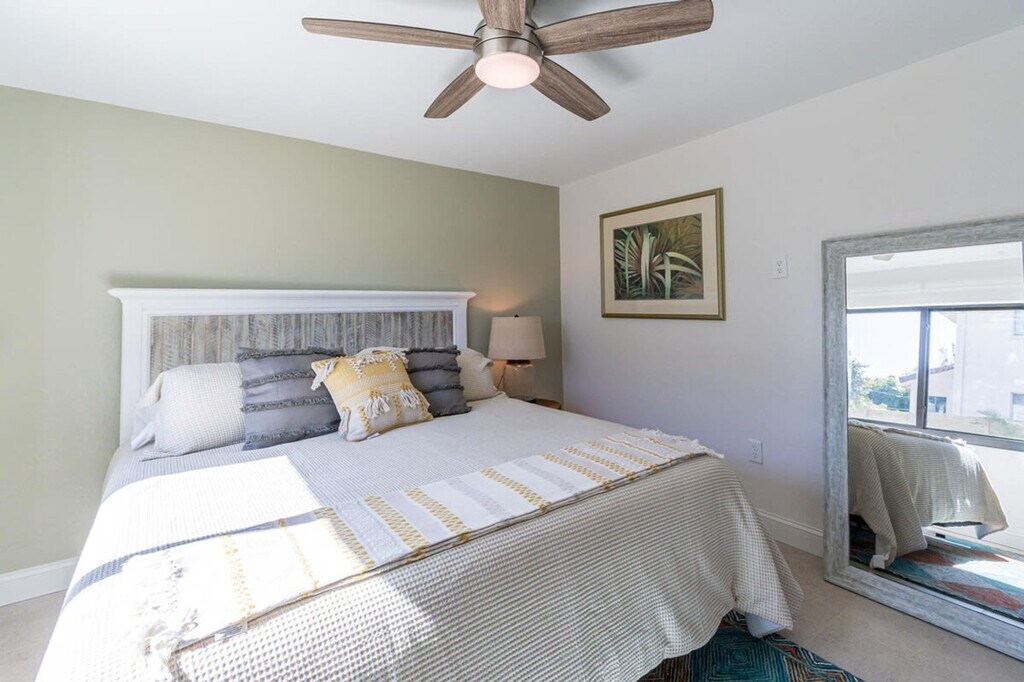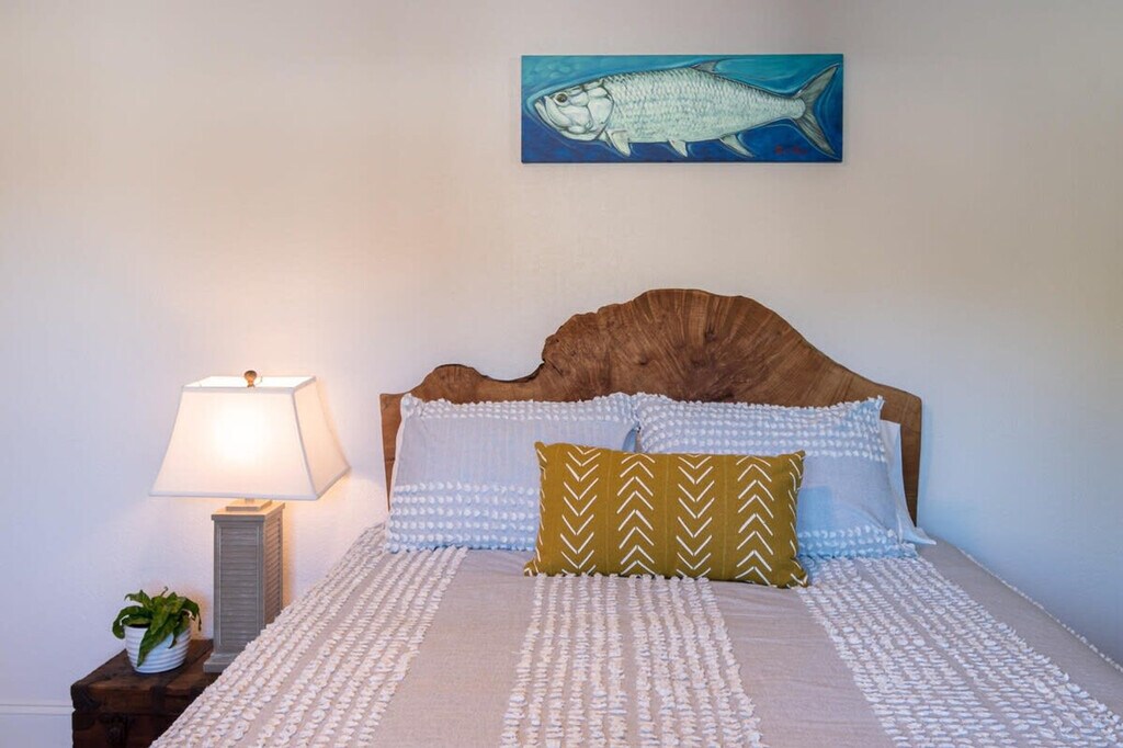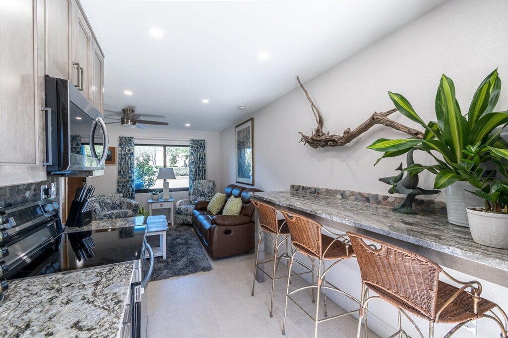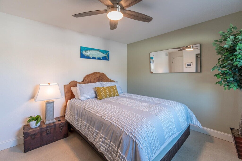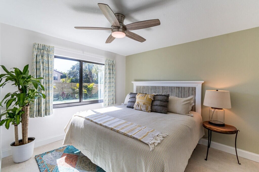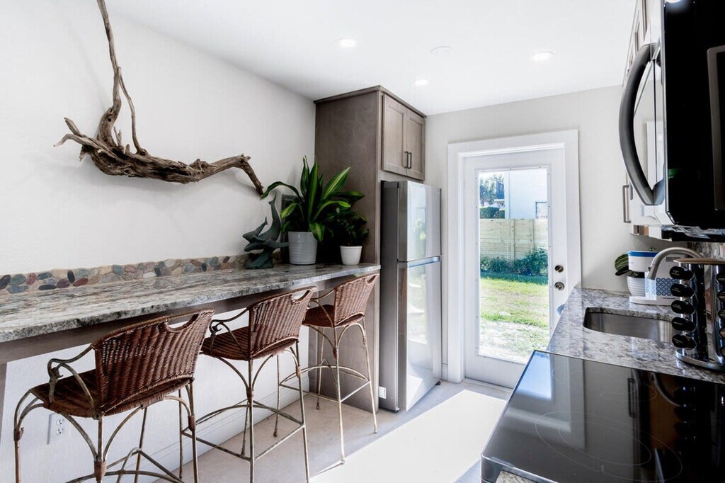 Welcome to the Florida coast's newest seaside condo at 400 South! This delightfully designed 2-bedroom, 1-bathroom unit in our newly opened "aparthotel" is sparkling clean and completely comfortable. With brand new renovations, appliances, and furniture, the unit is built to exceed expectations while providing an exceptional stay. Located just across the street from Orlando's nearest beach and minutes south of the Kennedy Space Center at the famed Space Coast, it's a perfect spot for couples, friends, or families who want to splash in the waves and see the sights on an unforgettable trip. Minutes from the bars and restaurants of Cocoa Beach, this apartment is here to maximize your travel experience. Located on the first floor of our 8-unit "aparthotel," Unit C includes one king bedroom, one queen bedroom, and a bright bathroom with a large walk-in shower. Each bedroom provides ample closet space to stow your belongings, while the bathroom includes a vanity with extra storage space in the closet adjacent to the door. The common areas offer amazing sunlight, highlighting beautiful features like chic vinyl flooring, playful decor, and brand new furniture and appliances, including a dishwasher. In the lounge area, you'll find plenty of seating including a reclining couch to kick back and stream your favorite show on the Smart TV, while the ocean-chic kitchen is fully stocked with a driftwood bar that provides seating for four. This unit is an ideal escape to take advantage of all the area has to offer. While we love all furry friends, only dogs are allowed at this property, with a fee of $100 per pet per stay. 400 South is a newly renovated, 8-unit "aparthotel" located just outside historic downtown Cocoa Beach. Situated on one of its popular local beachfront streets, you'll be in perfect proximity to the ocean, ideal for daytime beach sojourns or a romantic sandy sunset walk. It's a 5-minute walk to downtown, and just 50 steps to the beach from the front door! The surrounding neighborhood is beautiful, with a gated community directly across the street and million-dollar mansions all around. Located on A1A with Uber and Lyft being very prevalent in the area, the downtown area is within walking distance. To ensure a comfortable start to your stay, we provide an initial stock of essentials such as paper towels, toilet paper, tissues, coffee pods, creamer, sugar, light cleaning supplies, garbage bags, sponges, dish soap, and dishwasher tabs. If you need additional supplies during your stay, please plan to replenish them as needed. Mailbox access is not available for guests. Our digital locks let you arrive and check yourselves in, but we’re here if you need us. Message us on the app if you need anything during your stay. For urgent matters, call the number provided. [SI]