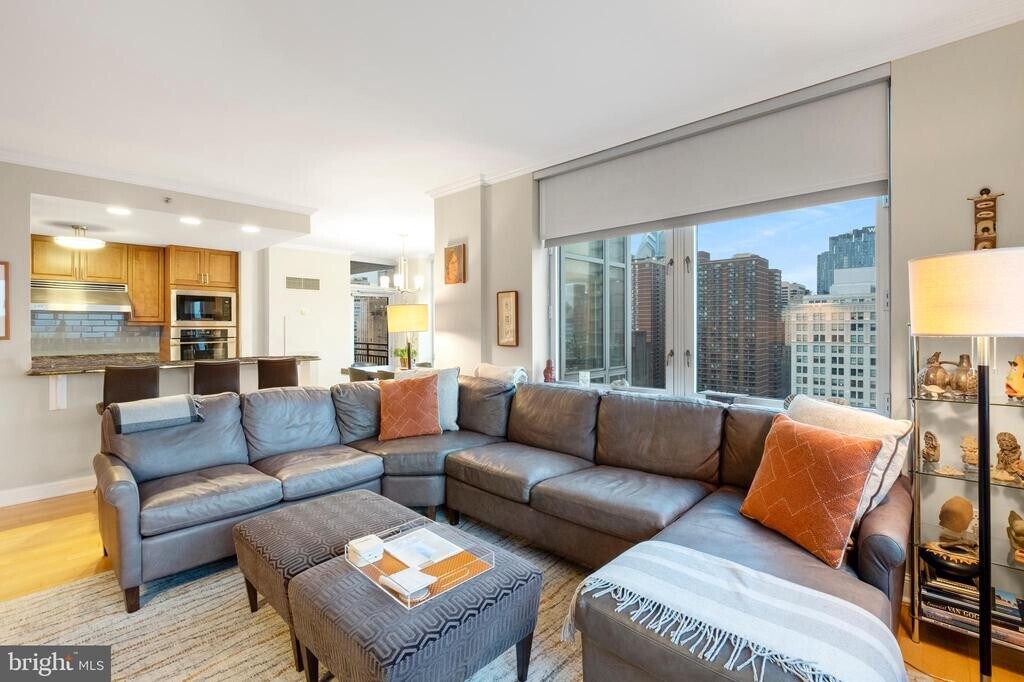 Let the sunshine pour into this exceptional, sprawling THREE-BEDROOM THREE AND A HALF BATHROOM RESIDENCE at The Symphony House, where luxury, space, and convenience come together seamlessly. Complete with GARAGE PARKING and rich HARDWOOD FLOORS throughout, this beautifully appointed home offers an expansive OPEN-CONCEPT living and dining area designed for both grand entertaining and comfortable everyday living. OVERSIZED WINDOWS flood the space with natural light, enhancing the airy feel and highlighting the home’s elegant finishes. The chef’s kitchen is thoughtfully designed with a generous BREAKFAST BAR, GRANITE COUNTERTOPS, abundant cabinetry, and STAINLESS STEEL APPLIANCES, making it as functional as it is impressive. Whether hosting intimate dinners or larger gatherings, this layout allows for effortless flow and connection. The enormous primary suite serves as a true retreat, offering exceptional space, generous closets, and a spa-inspired marble ensuite bath designed for relaxation. Two additional bedrooms are perfectly situated, creating a layout that feels like a townhome within a full-service condominium — ideal for guests, family, or a dedicated home office. Every detail has been carefully considered to provide comfort, style, and flexibility. Step onto your PRIVATE BALCONY just off the gracious living area and take in magnificent city views — the perfect backdrop for morning coffee, sunset cocktails, or simply unwinding above it all. Residents of The Symphony House enjoy an array of first-class amenities, including a state-of-the-art FITNESS CENTER, INDOOR POOL, elegant residents’ lounge, OUTDOOR SUN DECK, and 24/7 FRONT DESK SERVICE. Ideally located just moments from RITTENHOUSE SQUARE AND WASHINGTON SQUARE, and within easy walking distance to some of the finest dining, cultural attractions, and entertainment in Philadelphia, this stunning residence delivers refined city living at its absolute best.