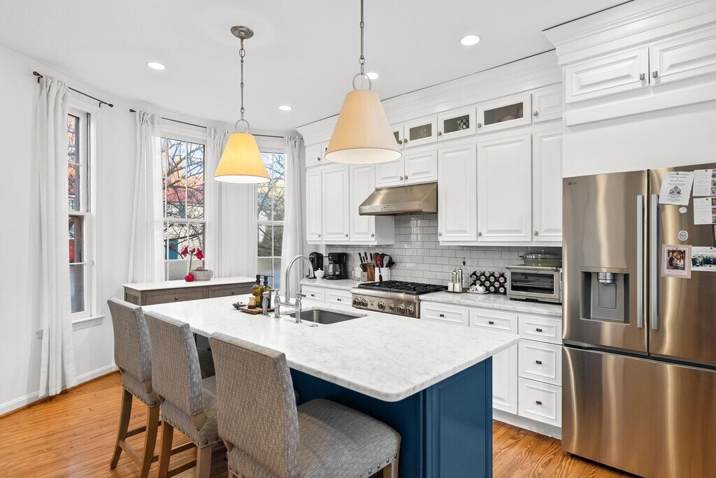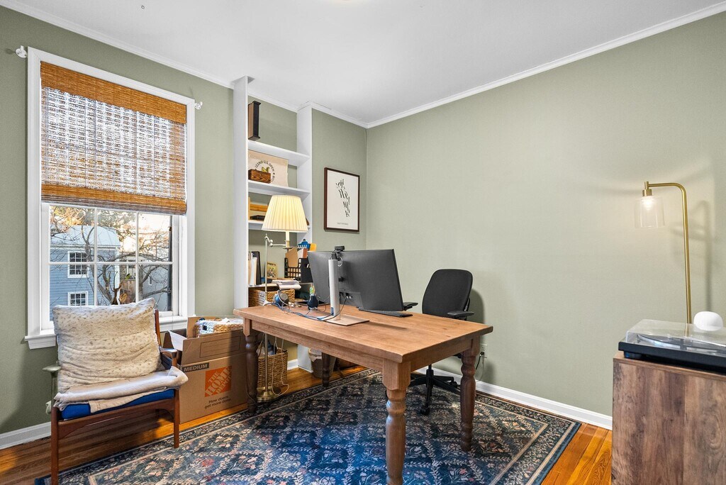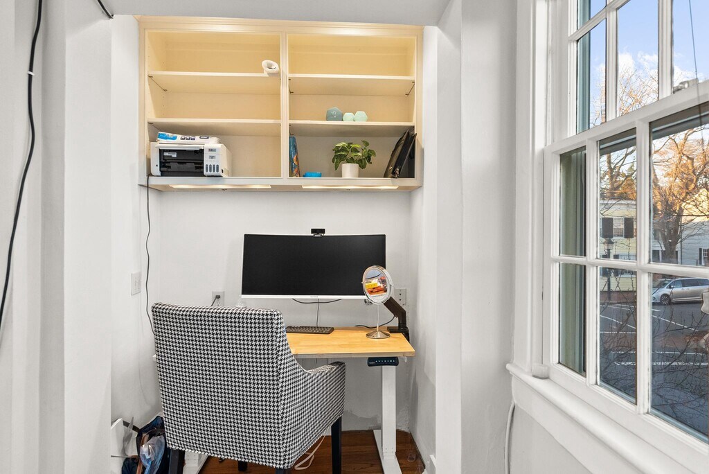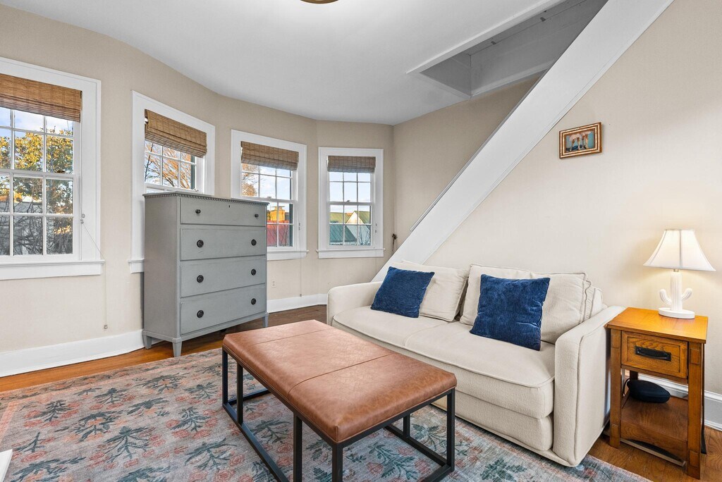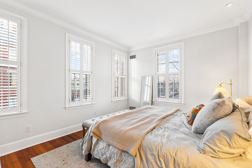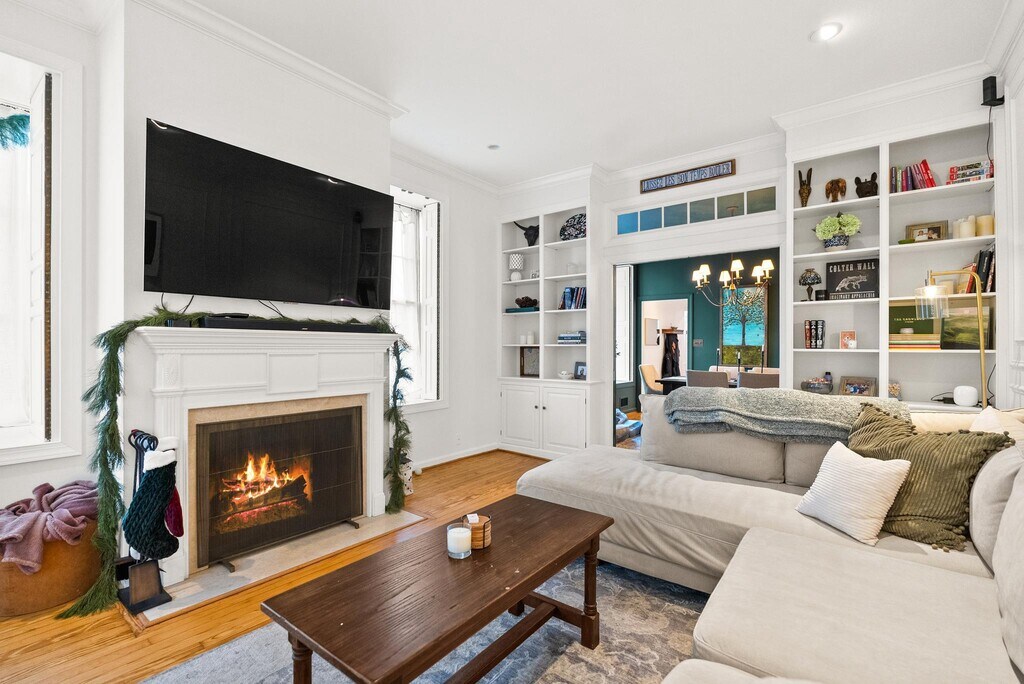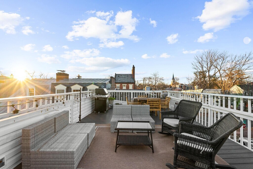 PARTIALLY FURNISHED! Just one block to the waterfront - live your best life on one of the best blocks in Old Town. Enjoy Saturday Farmer's Market, local shops and restaurants, walks along the river front and more. Circa 1900 this corner townhome offers the best in classic Old Town living. Entertain guests, dine al-fresco, or enjoy the sunrise with a morning cup of coffee on the rooftop deck with river views! Enter the home through a lovely vestibule to the spacious living room featuring wood floors, wood-burning fireplace, and large picture window streaming natural light. Formal dinners are a must with the formal dining room with dry bar and the gourmet eat-in kitchen with large island, stainless appliances and stone counters; a full bath, laundry closet, and secondary access to the home off Wolfe Street complete the main level. Retreat to the primary bedroom suite with beautiful wallpaper accent wall, walk-in closet, and spa-like ensuite bath - an additional bedroom, full bath, and upper level family room with access to the rooftop deck complete the upper level. The lower level is home to a third bedroom, office space and plenty of storage, it also has a separate side exterior entrance ideal for additional privacy.